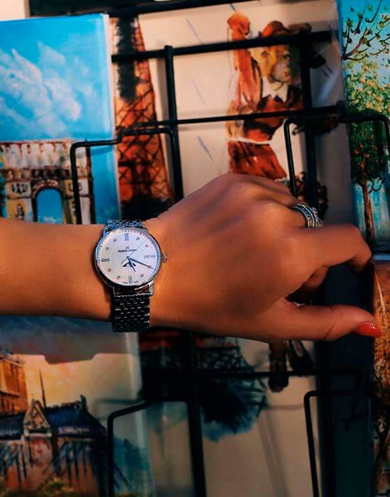 Женские швейцарские часы с лунным календарем Maurice Lacroix Eliros Moonphase EL1096-SS002-150-1, кварцевый механизм с высокой точностью. Сапфировое стекло устойчивое к появлению царапин, обладающее высокой прозрачностью. Класс водозащиты: 50 метров, позволит защитить корпус от случайных брызг или капель дождя. Корпус часов изготовлен из стали, цвета.