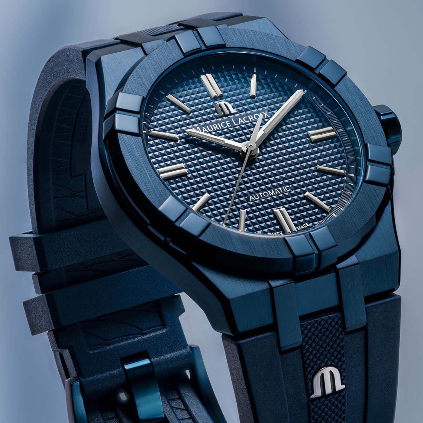 Мужские швейцарские механические часы с автоподзаводом Maurice Lacroix Aikon Automatic 39 mm Blue Pvd Limited Edition AI6007-PVC00-430-4 с механическим механизмом (автоматический калибр) с высокой точностью. Гильошированный циферблат с узором Clous de Paris защищен сапфировым стекломСапфировое стеклоПрочный и надёжный материал из кристалла сапфира синтетического происхождения, характеризующийся особой твёрдостью и устойчивостью к царапинам и повреждениям. с антибликовым покрытиемАнтибликовое покрытиеСлой оксида металла в 0,13-0,3 микрон, благодаря которому стекло часов не бликует и не отражает свет. Антибликовое покрытие уменьшает отражение света в 10 раз, обеспечивая отличную читаемость показателей циферблата., устойчивым к царапинам. Эта выразительная модель с корпусом из нержавеющей стали с PVD-покрытиемPVDУльтратонкое покрытие наносится в технике вакуумного напыления, сочетает в себе нитрид титана особой прочности со слоем золота или оксида хрома. Несёт в себе декоративную или защитную функцию.. Стрелки и метки оснащены люминесцентным покрытиемЛюминесцентное покрытиеПозволяет считывать показания времени в темноте. Производители наносят на стрелки, часовые индексы, безель или поверхность циферблата светонакопительный состав, дающий холодное свечение., обеспечивающим хорошую читаемость в темноте. Водозащита: 200 метров, позволит плавать, нырять и заниматься другими водными видами спорта. Удобный каучуковый браслет со стандартной застежкой для максимального комфорта и лёгкости в повседневном использовании. Модель подчёркивает индивидуальность владельца и идеально подходит как для повседневного образа.