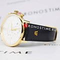 Часы-хронографХронографФункция позволяет измерять отрезки времени с особой точностью: часы, минуты, секунды. Верным признаком хронографа является наличие на циферблате 3 дополнительных окошек-счётчиков.. Кварцевый механизм с высокой точностью. Сапфировое стеклоСапфировое стеклоПрочный и надёжный материал из кристалла сапфира синтетического происхождения, характеризующийся особой твёрдостью и устойчивостью к царапинам и повреждениям. устойчивое к появлению царапин, обладающее высокой прозрачностью. Класс водозащиты: 50 метров, позволит защитить корпус от случайных брызг или капель дождя. Корпус часов изготовлен из нержавеющей стали с PVD-покрытиемPVDУльтратонкое покрытие наносится в технике вакуумного напыления, сочетает в себе нитрид титана особой прочности со слоем золота или оксида хрома. Несёт в себе декоративную или защитную функцию.. Кожаный ремешок.