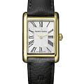 Женские кварцевые часы Maurice Lacroix Fiaba Square FFA1205-PVY01-110-2 — это изысканный аксессуар, вдохновлённый сказками и создающий образ элегантной современной женщины. Модель выполнена в прямоугольной форме из нержавеющей стали с размерами 24x34 мм и толщиной 6,5 мм, что делает её утончённой и лаконичной. Циферблат серебристого цвета дополнен центральным гильошированным рисунком «flinque», а его поверхность защищена сапфировым стекломСапфировое стеклоПрочный и надёжный материал из кристалла сапфира синтетического происхождения, характеризующийся особой твёрдостью и устойчивостью к царапинам и повреждениям. с двусторонним антибликовым покрытиемАнтибликовое покрытиеСлой оксида металла в 0,13-0,3 микрон, благодаря которому стекло часов не бликует и не отражает свет. Антибликовое покрытие уменьшает отражение света в 10 раз, обеспечивая отличную читаемость показателей циферблата., устойчивым к повреждениям. Римские цифры черного цвета и стрелки с алмазной огранкой имеют PVD-покрытиеPVDУльтратонкое покрытие наносится в технике вакуумного напыления, сочетает в себе нитрид титана особой прочности со слоем золота или оксида хрома. Несёт в себе декоративную или защитную функцию. цвета желтого золота, подчёркивая изысканность дизайна. Часы оснащены швейцарским кварцевым механизмом, обеспечивающим точную работу и минимальное обслуживание. Погрешность хода не превышает -10/+20 секунд в месяц. Браслет из чёрной кожи шириной 18 мм оснащён стандартной застёжкой из нержавеющей стали с PVD-покрытием цвета желтого золота, обеспечивающей комфорт и надёжную фиксацию на запястье. Система быстрой замены ремешка позволяет легко менять его по желанию. Водонепроницаемость позволяет использовать модель при мытье рук или под лёгким дождём. Гарантия 2 года подтверждает качество и долговечность изделия. Эти часы станут универсальным аксессуаром для тех, кто ценит сочетание стиля, функциональности и швейцарского мастерства — идеальный выбор для вечерних выходов и торжественных случаев.