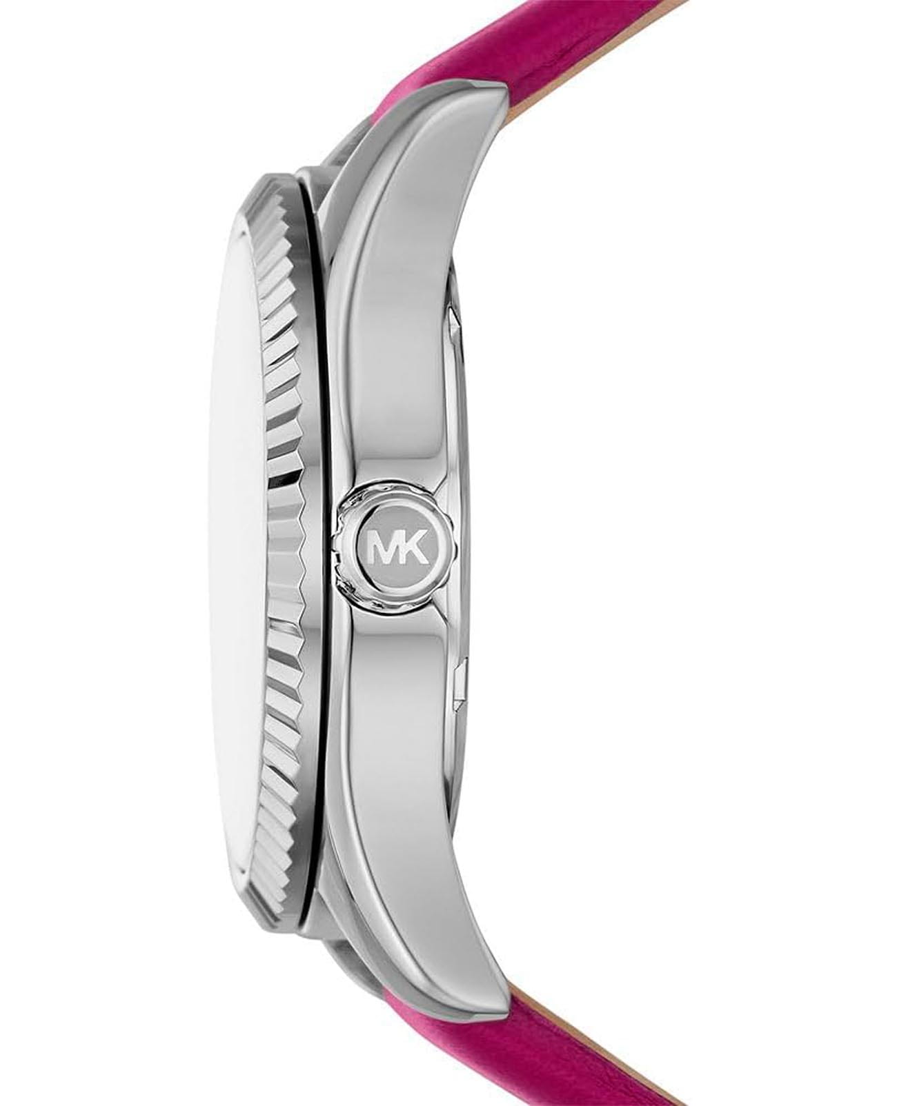 Женские американские часы с минеральным стекломМинеральное стеклоМинеральное стекло представляет собой искусственно выращенный минерал кварца. Такое стекло отличается особой устойчивостью к повреждениям и царапинам. Уступает по некоторым качествам сапфировому стеклу. Michael Kors Lexington MK4749, кварцевый механизм с высокой точностью. Корпус часов изготовлен из нержавеющей стали. БезельБезельВнешний ободок, закрепляющий стекло. В спортивных часах так называется поворотное кольцо с делениями на циферблате, выполняет роль таймера – замеряет отрезки времени на шкале. Неподвижный безель – элемент декора. Однонаправленно вращающийся безель на дайверских часах позволяет фиксировать моменты погружения и выныривания на поверхность. с алмазной гранью. Метки в виде штрихов и римских цифр. Заводная головка с защитой. Класс водозащиты: 100 метров, позволит плавать, нырять и заниматься другими водными видами спорта. Кожаный ремешок на стандартной застёжке.