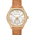 Эти часы — идеальный аксессуар, который придаст женскому образу завершенность и особый шарм. Женские американские часы Michael Kors Sage MK4819 имеют кварцевый механизм с высокой точностью. Корпус и безельБезельВнешний ободок, закрепляющий стекло. В спортивных часах так называется поворотное кольцо с делениями на циферблате, выполняет роль таймера – замеряет отрезки времени на шкале. Неподвижный безель – элемент декора. Однонаправленно вращающийся безель на дайверских часах позволяет фиксировать моменты погружения и выныривания на поверхность.часов изготовлены из нержавеющей стали с золотистым PVD-покрытиемPVDУльтратонкое покрытие наносится в технике вакуумного напыления, сочетает в себе нитрид титана особой прочности со слоем золота или оксида хрома. Несёт в себе декоративную или защитную функцию.. Перламутровый циферблат и безельБезельВнешний ободок, закрепляющий стекло. В спортивных часах так называется поворотное кольцо с делениями на циферблате, выполняет роль таймера – замеряет отрезки времени на шкале. Неподвижный безель – элемент декора. Однонаправленно вращающийся безель на дайверских часах позволяет фиксировать моменты погружения и выныривания на поверхность. украшены кристаллами. Циферблат с метками в виде римских цифр и штрихов защищен минеральным стекломМинеральное стеклоМинеральное стекло представляет собой искусственно выращенный минерал кварца. Такое стекло отличается особой устойчивостью к повреждениям и царапинам. Уступает по некоторым качествам сапфировому стеклу., что обеспечивает надежную защиту от царапин и повреждений. Секундная стрелка вынесена на отдельный циферблат, обрамленный кристаллами, что придает часам уникальный и стильный вид. Люминесцентное покрытиеЛюминесцентное покрытиеПозволяет считывать показания времени в темноте. Производители наносят на стрелки, часовые индексы, безель или поверхность циферблата светонакопительный состав, дающий холодное свечение. на стрелках обеспечивает отличную видимость в темноте. Класс водозащиты: 50 метров, позволит защитить корпус от случайных брызг или капель дождя. Удобный кожаный коричневый ремешок с тиснением под кожу крокодила с классической застежкой обеспечивает надежную фиксацию на запястье и легкость в надевании и снятии. Эти часы станут отличным дополнением к любому наряду, подчеркивая индивидуальность и стиль их обладательницы.