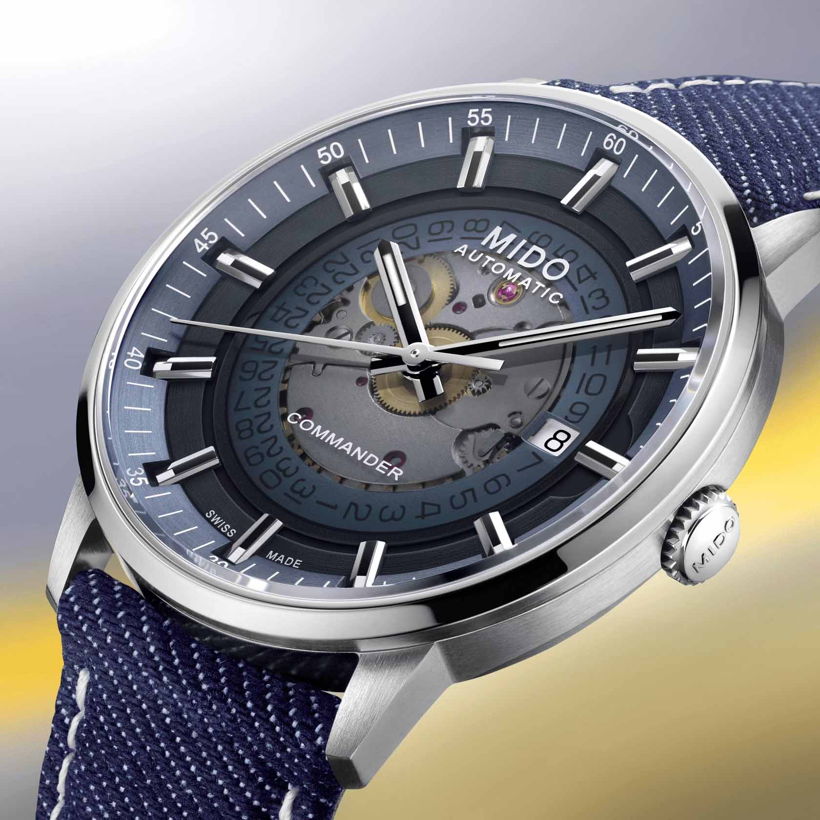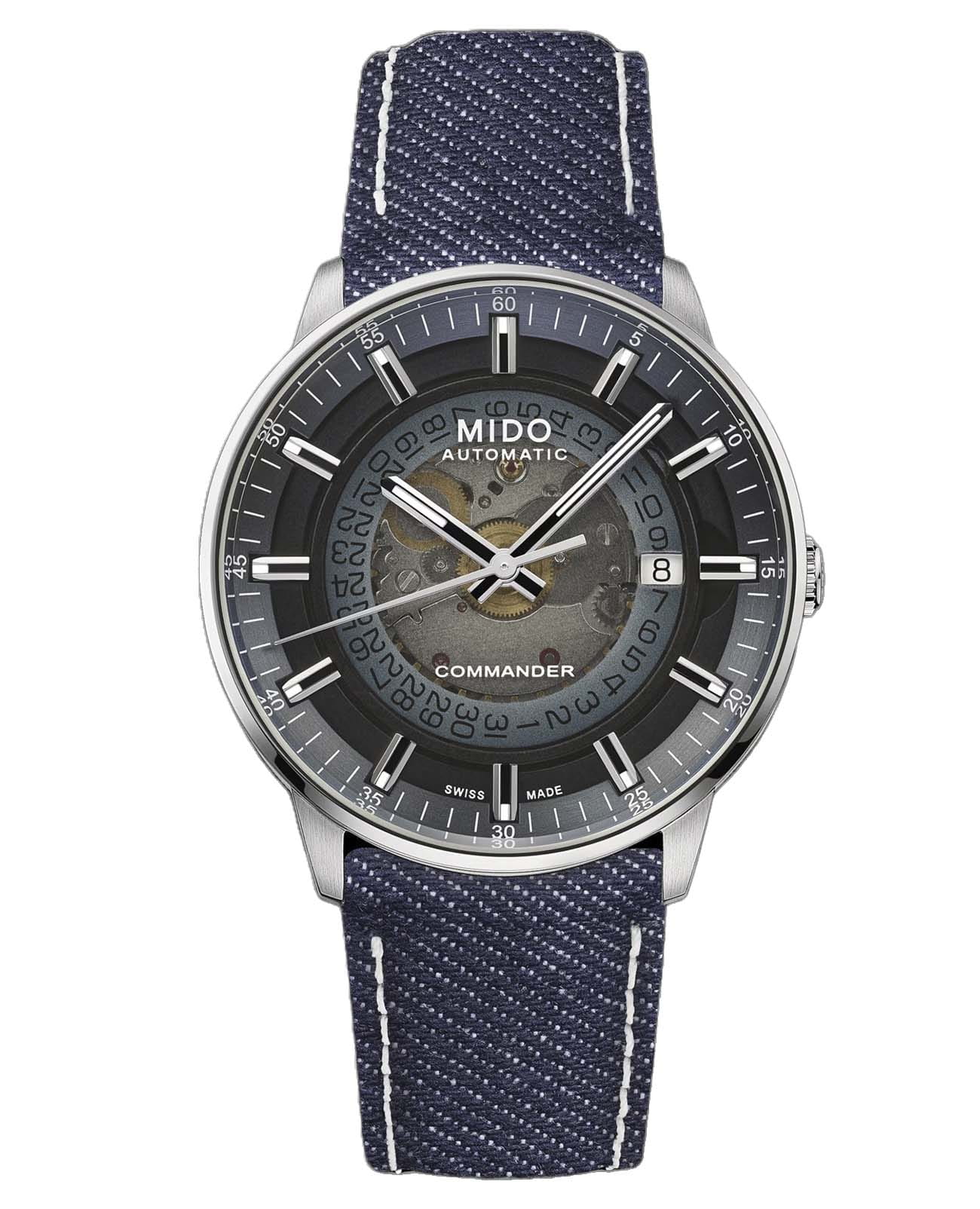 Мужские швейцарские механические часы Mido Commander Gradient M021.407.18.411.00, механический механизм (автоматический калибр) с высокой точностью. Сапфировое стеклоСапфировое стеклоПрочный и надёжный материал из кристалла сапфира синтетического происхождения, характеризующийся особой твёрдостью и устойчивостью к царапинам и повреждениям. устойчивое к появлению царапин, обладающее высокой прозрачностью. Корпус часов изготовлен из стали. Благодаря градиентному дымчатому узору, циферблат меняет свою прозрачность. Стрелки с люминесцентным покрытиемЛюминесцентное покрытиеПозволяет считывать показания времени в темноте. Производители наносят на стрелки, часовые индексы, безель или поверхность циферблата светонакопительный состав, дающий холодное свечение.. Окошко даты в положении 3 часов. Класс водозащиты: 50 метров, позволит защитить корпус от случайных брызг или капель дождя. Текстильный ремешок на стандартной застежке.