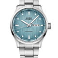 Вертикальная атласная отделка градиентного циферблата Multifort M напоминает о характерных чертах коллекции Côtes de Genève. Безупречное люминесцентное покрытиеЛюминесцентное покрытиеПозволяет считывать показания времени в темноте. Производители наносят на стрелки, часовые индексы, безель или поверхность циферблата светонакопительный состав, дающий холодное свечение. Super-LumiNova® создает контраст и читаемость на стрелках и круглых указателях. Легендарная надежность Multifort соответствует ритму знаменитого калибра 80. Запас хода до 80 часов обеспечивается Nivachron™Nivachron™Специально разработанный инновационный сплав Nivachron™ повышает устойчивость часов к воздействию магнитных полей. – революционного материала, обеспечивающего потрясающую точность. Mido предлагает Multifort M с системой смены ремня без инструментов, в стальном или текстильном исполнении на резиновой основе.