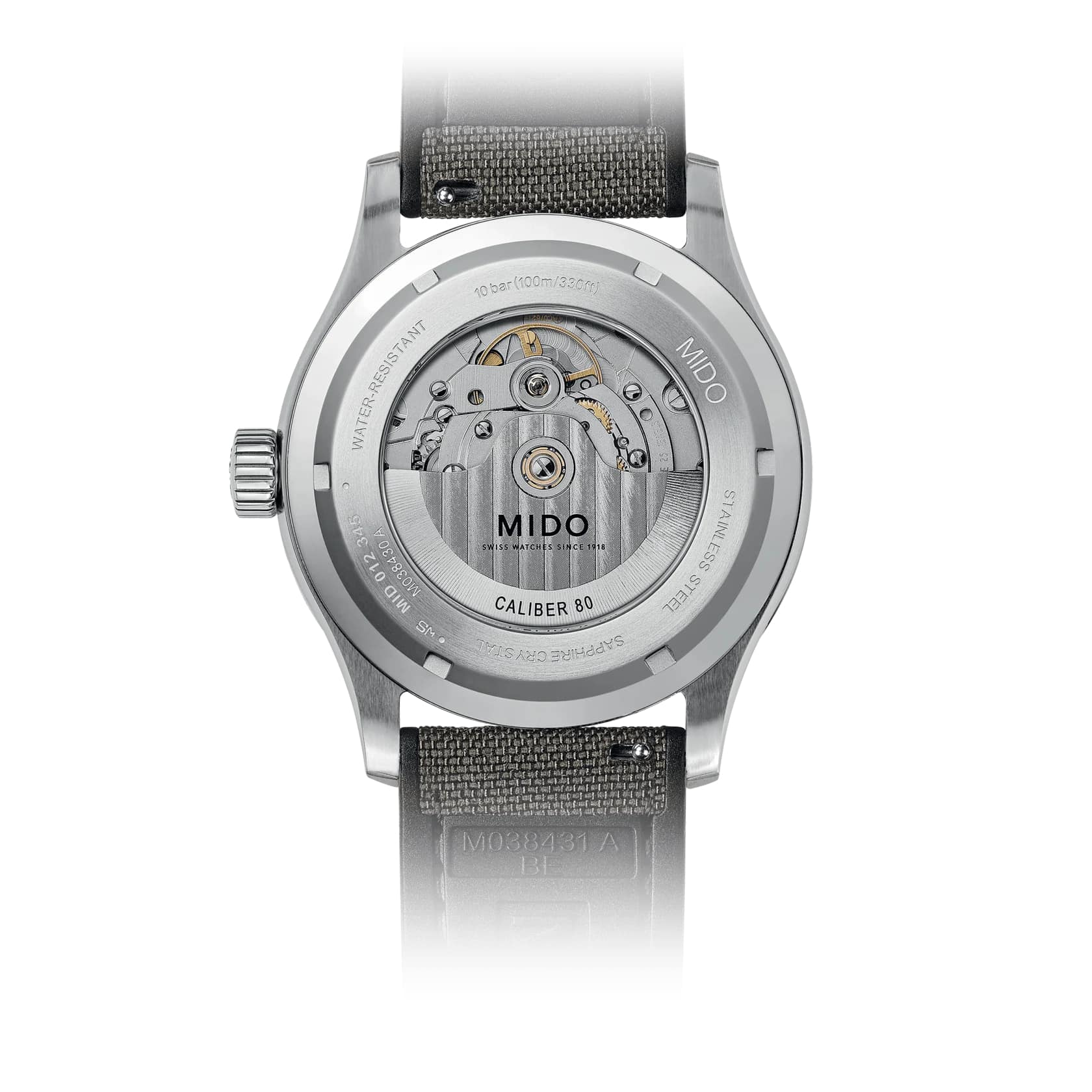 Вертикальная атласная отделка градиентного циферблата Multifort M напоминает о характерных чертах коллекции Côtes de Genève. Безупречное люминесцентное покрытиеЛюминесцентное покрытиеПозволяет считывать показания времени в темноте. Производители наносят на стрелки, часовые индексы, безель или поверхность циферблата светонакопительный состав, дающий холодное свечение. Super-LumiNova® создает контраст и читаемость на стрелках и круглых указателях. Легендарная надежность Multifort соответствует ритму знаменитого калибра 80. Запас хода до 80 часов обеспечивается Nivachron™Nivachron™Специально разработанный инновационный сплав Nivachron™ повышает устойчивость часов к воздействию магнитных полей. – революционного материала, обеспечивающего потрясающую точность. Mido предлагает Multifort M с системой смены ремня без инструментов, в стальном или текстильном исполнении на резиновой основе.