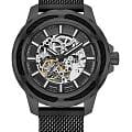 стальной миланским браслетом с IP-покрытиемIP-покрытиеМетод ионного напыления. Демонстрирует повышенную устойчивость к истиранию, окислению и химическим веществам. Под воздействием высокого давления и температуры около 1500°C молекулы металла надёжно соединяются с частицами корпуса часов. с раскладным замкомРаскладной замокДанный вариант застежки используется только на часах с металлическим браслетом. Отличительная особенность такого крепления в том, что длина браслета становится универсальной и вы можете самостоятельно отрегулировать нужный вам размер – застежка просто двигается по браслету часов.. Скелетонизированный циферблат дополнен акцентными стрелками и метками с люминесцентным покрытиемЛюминесцентное покрытиеПозволяет считывать показания времени в темноте. Производители наносят на стрелки, часовые индексы, безель или поверхность циферблата светонакопительный состав, дающий холодное свечение. для отличной читаемости в темноте, что делает модель более практичной. Стекло минеральное закалённоеМинеральное стеклоМинеральное стекло представляет собой искусственно выращенный минерал кварца. Такое стекло отличается особой устойчивостью к повреждениям и царапинам. Уступает по некоторым качествам сапфировому стеклу., устойчивое к царапинам. Водозащита до 50 метров позволит защитить корпус от случайных брызг или капель дождя. Благодаря своей универсальной эстетике эти часы уместны и в деловой среде, и в повседневном образе. Идеальный выбор для тех, кто ценит элегантный дизайн и качество.