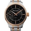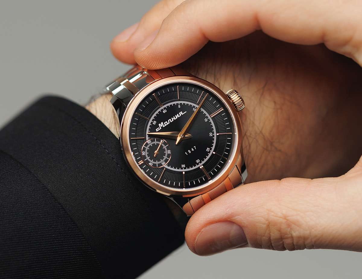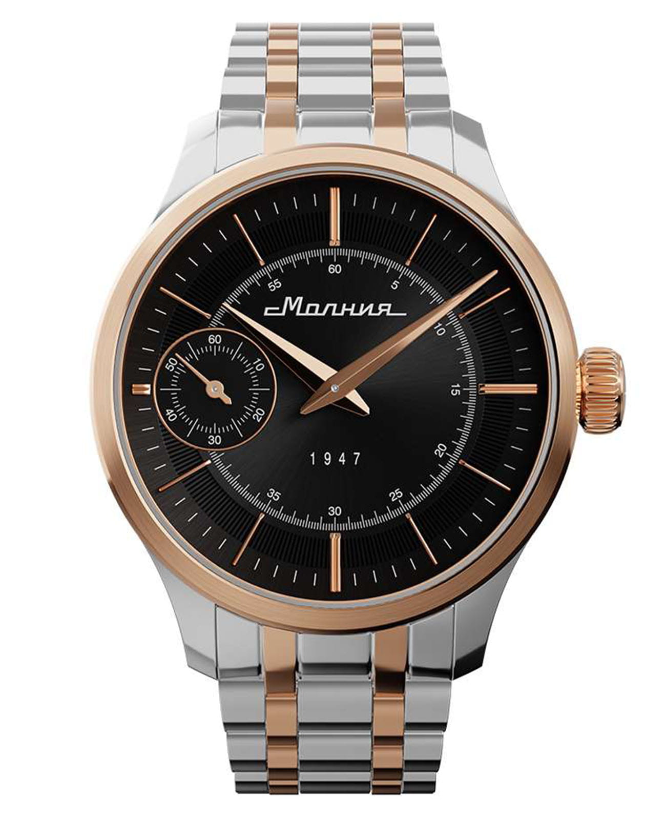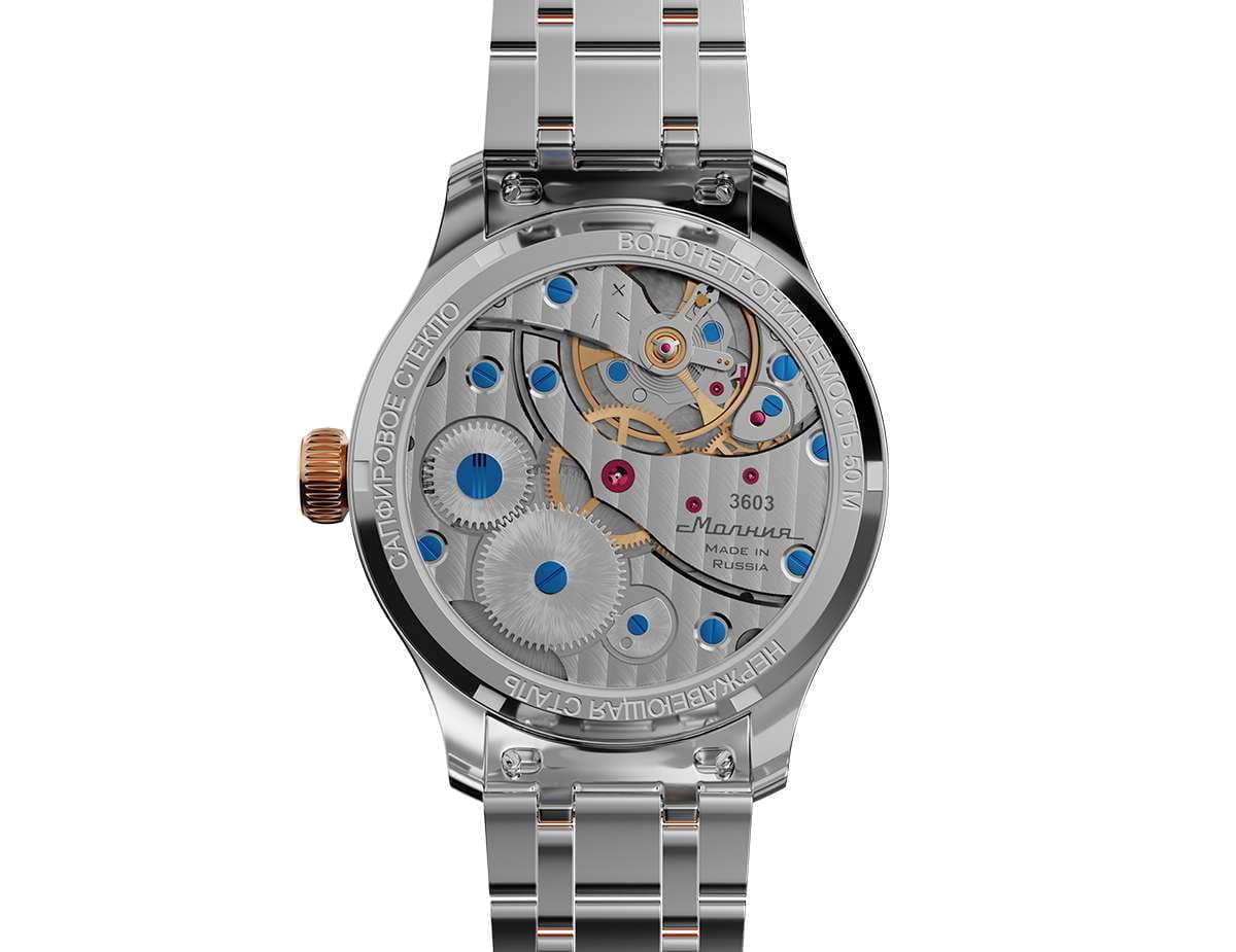 Мужские механические часы с ручным подзаводом — это аксессуар от легендарного бренда «МОЛНИЯ», созданный на Челябинском часовом заводе. Корпус диаметром 41 мм выполнен из нержавеющей стали 316L. БезельБезельВнешний ободок, закрепляющий стекло. В спортивных часах так называется поворотное кольцо с делениями на циферблате, выполняет роль таймера – замеряет отрезки времени на шкале. Неподвижный безель – элемент декора. Однонаправленно вращающийся безель на дайверских часах позволяет фиксировать моменты погружения и выныривания на поверхность. выполнен из стали с PVD-покрытиемPVDУльтратонкое покрытие наносится в технике вакуумного напыления, сочетает в себе нитрид титана особой прочности со слоем золота или оксида хрома. Несёт в себе декоративную или защитную функцию. и зеркальной отделкой. Циферблат чёрного цвета оформлен индексами и стрелками. Малая секундная стрелка вынесена на позицию 9 часов. Циферблат защищён сапфировым стекломСапфировое стеклоПрочный и надёжный материал из кристалла сапфира синтетического происхождения, характеризующийся особой твёрдостью и устойчивостью к царапинам и повреждениям. толщиной 2 мм. Механизм — мануфактурный калибр 3603, собранный вручную, с запасом хода до 40 часов. Прозрачная задняя крышка позволяет наблюдать за работой механизма. Часы оснащены стальным браслетом с частичным PVD-покрытиемPVDУльтратонкое покрытие наносится в технике вакуумного напыления, сочетает в себе нитрид титана особой прочности со слоем золота или оксида хрома. Несёт в себе декоративную или защитную функцию. под золото и системой быстрой замены на раскладной застёжкеРаскладная застёжкаТакой тип застёжки используется только на браслетах из металла. Она никогда не раскрывается полностью, происходит разделение на 2 и более частей. Раскладывающая застёжка снизит вероятность потери часов к минимуму. типа клипса. Водонепроницаемость 50 м позволяет использовать часы в повседневных условиях. Идеальный выбор для тех, кто ценит российское качество и традиции.
