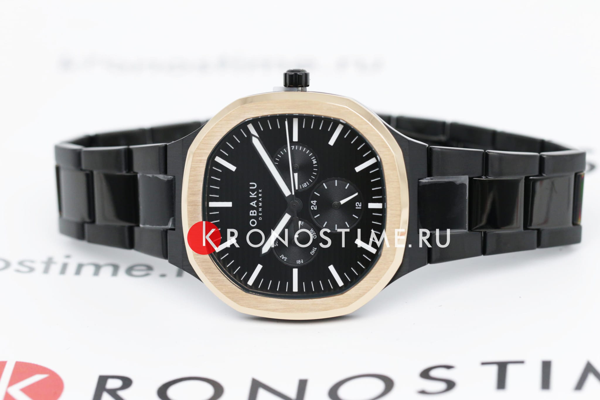 Мужские датские наручные часы Obaku Oktant V275GMMBSB, кварцевый механизм с высокой точностью. Минеральное стеклоМинеральное стеклоМинеральное стекло представляет собой искусственно выращенный минерал кварца. Такое стекло отличается особой устойчивостью к повреждениям и царапинам. Уступает по некоторым качествам сапфировому стеклу. устойчивое к появлению царапин, обладающее высокой прозрачностью. Класс водозащиты: 50 метров, позволит защитить корпус от случайных брызг или капель дождя. Корпус часов изготовлен из стали c IP-покрытиемIP-покрытиеМетод ионного напыления. Демонстрирует повышенную устойчивость к истиранию, окислению и химическим веществам. Под воздействием высокого давления и температуры около 1500°C молекулы металла надёжно соединяются с частицами корпуса часов. черного цвета и частичным покрытием цвета розового золота по безелюБезельВнешний ободок, закрепляющий стекло. В спортивных часах так называется поворотное кольцо с делениями на циферблате, выполняет роль таймера – замеряет отрезки времени на шкале. Неподвижный безель – элемент декора. Однонаправленно вращающийся безель на дайверских часах позволяет фиксировать моменты погружения и выныривания на поверхность.. Застёжка бабочка с кнопкамиЗастёжка "бабочка"Такой вид застёжки дополняется предохранителями, помогающими избежать случайного раскрытия браслета. Обладают изящным исполнением. .
