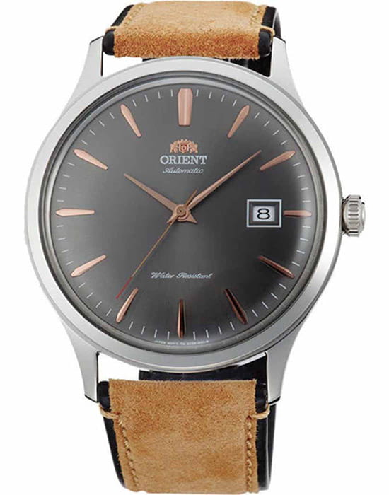 Часы Orient Bambino Version 4 AC08003A — это изысканное сочетание современного минимализма и классического дизайна. Корпус из нержавеющей стали диаметром 42 мм защищён выпуклым Минеральным стекломМинеральное стеклоМинеральное стекло представляет собой искусственно выращенный минерал кварца. Такое стекло отличается особой устойчивостью к повреждениям и царапинам. Уступает по некоторым качествам сапфировому стеклу., которое придаёт часам винтажный шарм и надёжно оберегает циферблат. Серый циферблат с солнечным узором, украшенный тонкими розово-золотыми метками и стрелками, подчёркивает элегантность и современный стиль модели. Автоматический механизм Orient Calibre F6724 поддерживает ручной завод и функцию остановки секундной стрелки, обеспечивая точность и автономность до 40 часов. Кожаный ремешок с замшевой текстурой в бежевом оттенке дополнен классической пряжкой для комфорта и надёжной фиксации. Окошко даты, расположенное на отметке «3 часа», добавляет функциональности, а водонепроницаемость до 30 метров защищает часы от случайных брызг. Orient FAC08003A0 — это часы для тех, кто ценит стиль, надёжность и внимание к деталям.