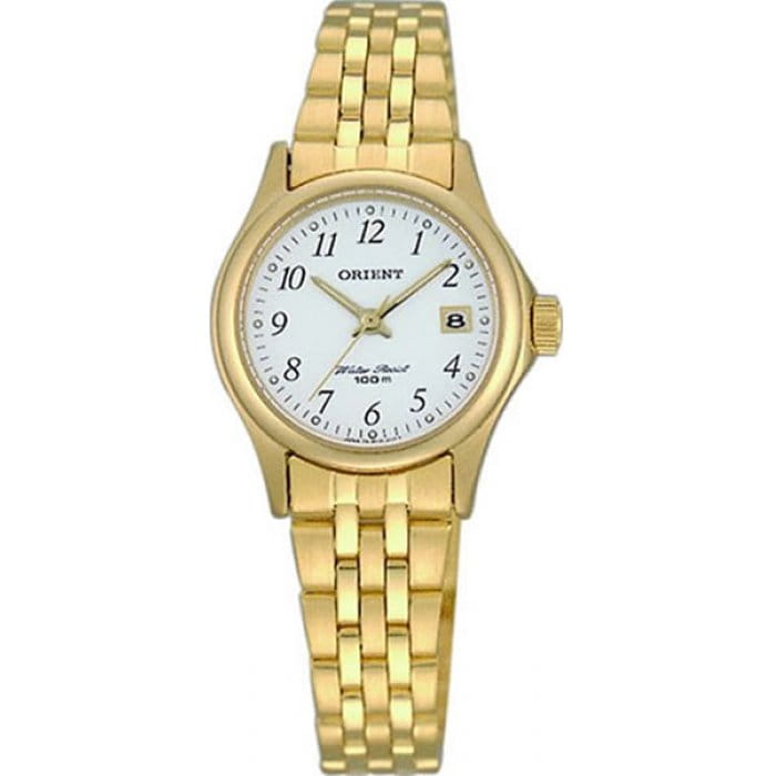 Кварцевые часы; WR 100; Женские; Минеральное стекло; Нержавеющая сталь. Апертура даты. Корпус выполнен из стали. Диаметр корпуса 25.3 мм, с заводной головкой головкой 27.8 мм.