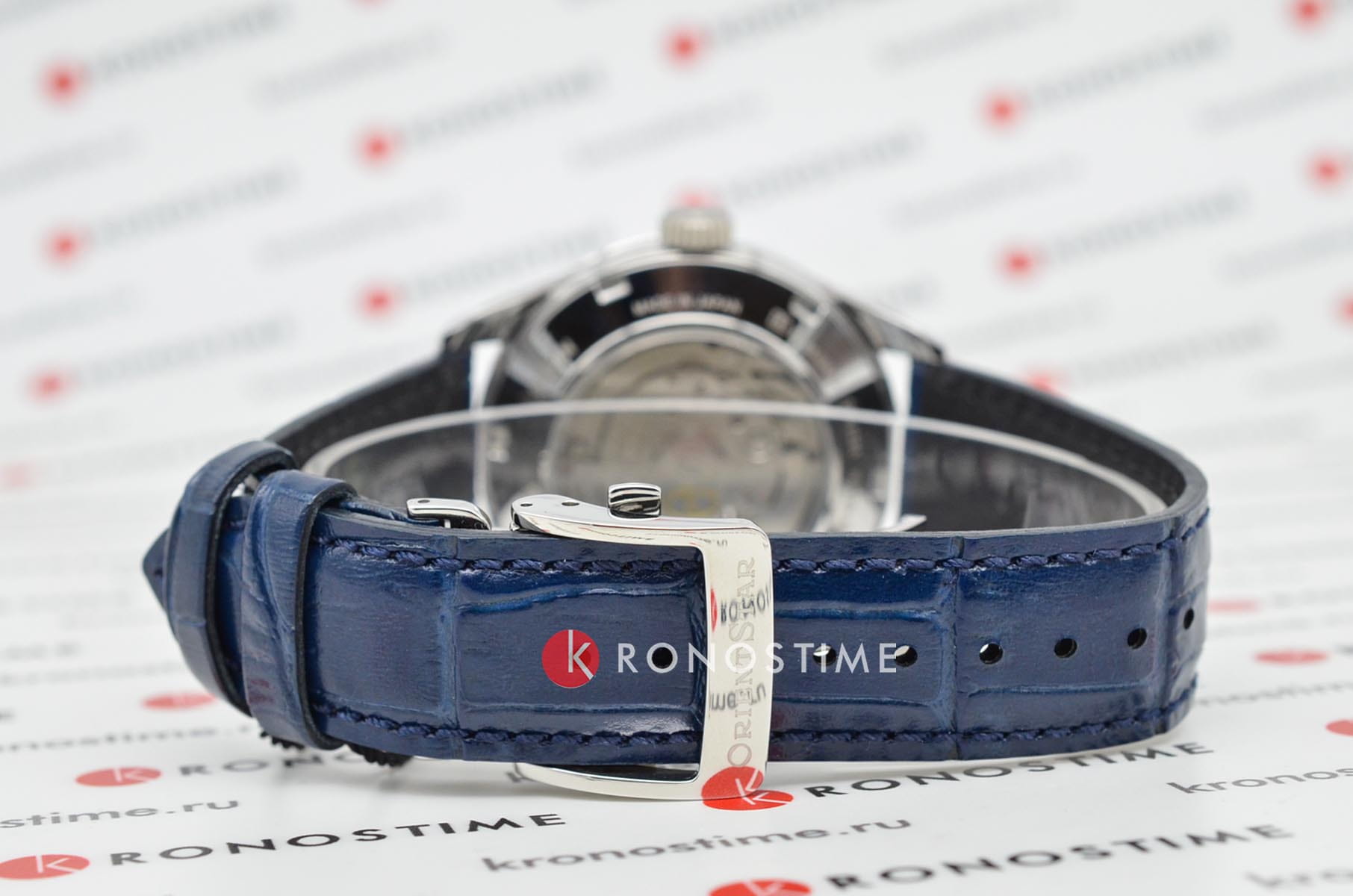 Корпус часов выполнен из прочной нержавеющей стали, а рифленая заводная головка придает им особую элегантность. Прозрачная задняя крышка открывает взору работу механизма, делая часы еще более интересными для ценителей часового искусства. Открытый баланс добавляет динамичности и привлекает внимание к внутреннему устройству часов.