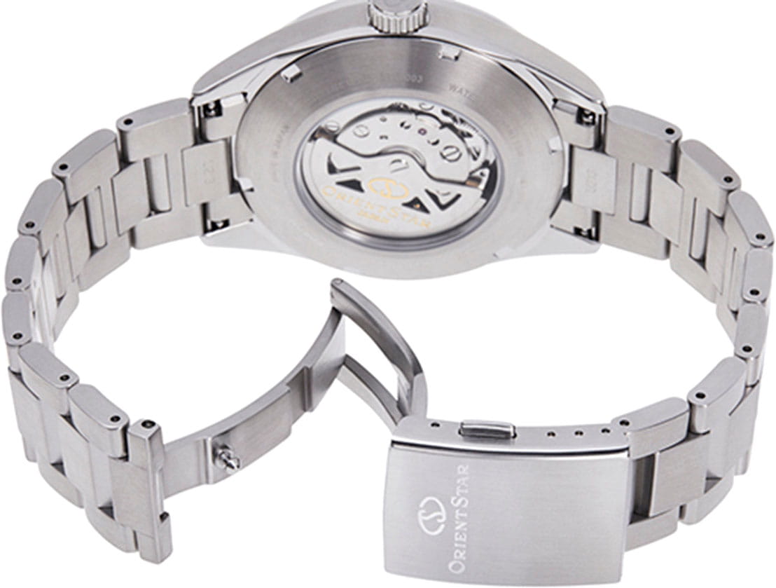 Мужские механические часы с автоподзаводом Orient Star RE-AU0404N0 — образец японского мастерства и современного дизайна. Корпус из нержавеющей стали, диаметром 42 мм. Циферблат — серый, с солнечной текстурой Sunray, штриховыми метками и окошком даты в положении 3 часов. Стекло — сапфировоеСапфировое стеклоПрочный и надёжный материал из кристалла сапфира синтетического происхождения, характеризующийся особой твёрдостью и устойчивостью к царапинам и повреждениям. с антибликовым покрытием. Ретроградный индикатор запаса хода до 50 часов, функция stop-second, ручной завод. Механизм — японский калибр F6N43 (22 камня, 21 600 пк/ч), магнитоустойчивый (4 800 А/м). Браслет — стальной на раскладной застёжкеРаскладная застёжкаТакой тип застёжки используется только на браслетах из металла. Она никогда не раскрывается полностью, происходит разделение на 2 и более частей. Раскладывающая застёжка снизит вероятность потери часов к минимуму.. Водонепроницаемость 50 м. Идеальный выбор для тех, кто ценит японское качество и современный стиль.