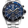 Часы Orient RA-TX0208L — это лимитированная модель, выпущенная в честь 20-летия серии Mako, ограниченная 3 000 экземплярами. Корпус из нержавеющей стали диаметром 42,8 мм оснащён однонаправленным БезелемБезельВнешний ободок, закрепляющий стекло. В спортивных часах так называется поворотное кольцо с делениями на циферблате, выполняет роль таймера – замеряет отрезки времени на шкале. Неподвижный безель – элемент декора. Однонаправленно вращающийся безель на дайверских часах позволяет фиксировать моменты погружения и выныривания на поверхность. чёрно-синего цвета, что подчеркивает их дайверский стиль. Градиентный голубой циферблат с арабской цифрой на отметке «12 часов» и люминесцентными стрелками и меткамиЛюминесцентное покрытиеПозволяет считывать показания времени в темноте. Производители наносят на стрелки, часовые индексы, безель или поверхность циферблата светонакопительный состав, дающий холодное свечение. обеспечивает отличную читаемость в любых условиях. Три субциферблата включают функции хронографа и 24-часового индикатора. Часы оснащены Orient Cal. VS752, который поддерживает запас хода до 6 месяцев при полном заряде. Сапфировое стеклоСапфировое стеклоПрочный и надёжный материал из кристалла сапфира синтетического происхождения, характеризующийся особой твёрдостью и устойчивостью к царапинам и повреждениям. защищает циферблат от царапин, сохраняя идеальный внешний вид. Браслет из нержавеющей стали с раскладной застёжкой обеспечивает комфортное ношение и надёжную фиксацию. Водонепроницаемость до 200 метров делает часы подходящими для плавания и дайвинга. Orient RA-TX0208L — это сочетание исключительного стиля, надёжности и ограниченного выпуска, что делает их идеальным выбором для ценителей часового искусства.