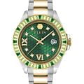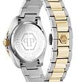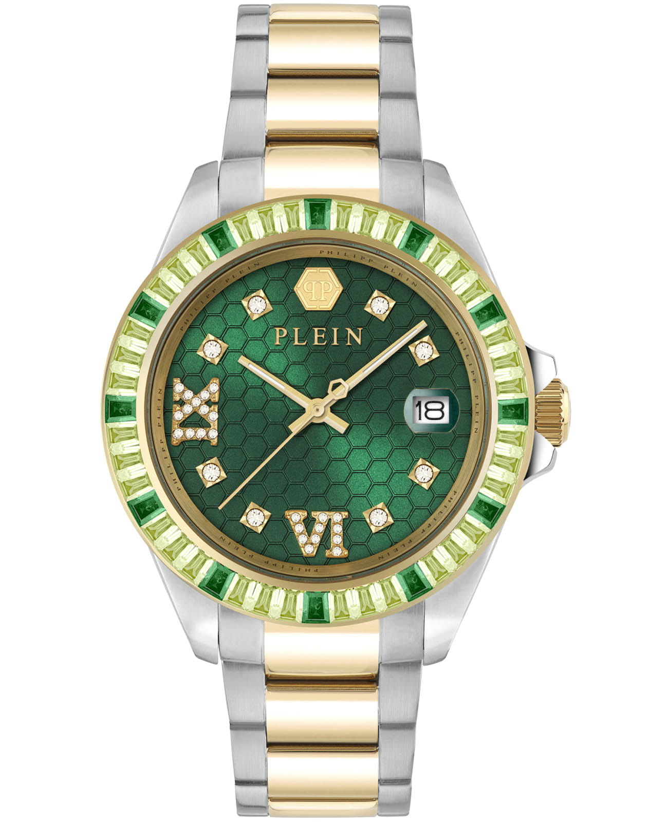 Женские кварцевые часы Philipp Plein Lady Empire PW2FA0225 — это стильное сочетание элегантности и современного дизайна. Изящный корпус выполнен из нержавеющей стали, диаметром 39 мм, что придаст образу женственности и романтизма. Изысканный циферблат с метками в виде точек и римских цифр придает модели особый блеск. Циферблат защищен минеральным стекломМинеральное стеклоМинеральное стекло представляет собой искусственно выращенный минерал кварца. Такое стекло отличается особой устойчивостью к повреждениям и царапинам. Уступает по некоторым качествам сапфировому стеклу., обеспечивающий устойчивость к царапинам и украшен кристаллами. Стрелки с люминесцентным покрытиемЛюминесцентное покрытиеПозволяет считывать показания времени в темноте. Производители наносят на стрелки, часовые индексы, безель или поверхность циферблата светонакопительный состав, дающий холодное свечение.. Окошко даты находится в положении 3 часа. БезельБезельВнешний ободок, закрепляющий стекло. В спортивных часах так называется поворотное кольцо с делениями на циферблате, выполняет роль таймера – замеряет отрезки времени на шкале. Неподвижный безель – элемент декора. Однонаправленно вращающийся безель на дайверских часах позволяет фиксировать моменты погружения и выныривания на поверхность. с PVD-покрытиемPVDУльтратонкое покрытие наносится в технике вакуумного напыления, сочетает в себе нитрид титана особой прочности со слоем золота или оксида хрома. Несёт в себе декоративную или защитную функцию. украшен цирконами. Часы оснащены надежным кварцевым механизмом. Стальной браслет с частичным PVD-покрытиемPVDУльтратонкое покрытие наносится в технике вакуумного напыления, сочетает в себе нитрид титана особой прочности со слоем золота или оксида хрома. Несёт в себе декоративную или защитную функцию. на застёжке-бабочке с кнопкамиЗастёжка "бабочка"Такой вид застёжки дополняется предохранителями, помогающими избежать случайного раскрытия браслета. Обладают изящным исполнением. , гарантирует комфортное и безопасное ношение. Класс водозащиты: 50 метров позволит защитить корпус от случайных брызг или капель дождя. Phlipp Plein — отличный выбор для тех, кто ценит яркость и качество.