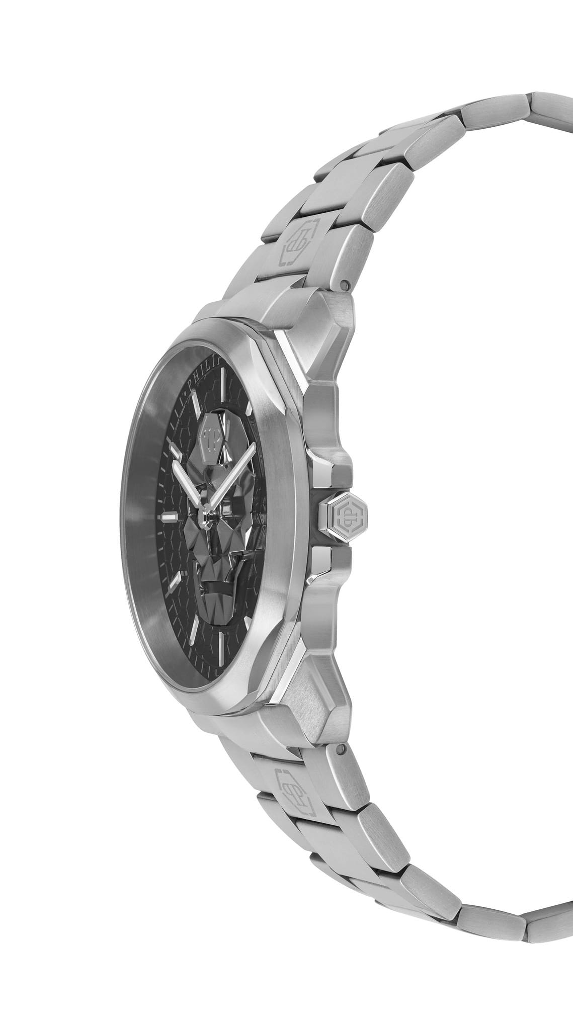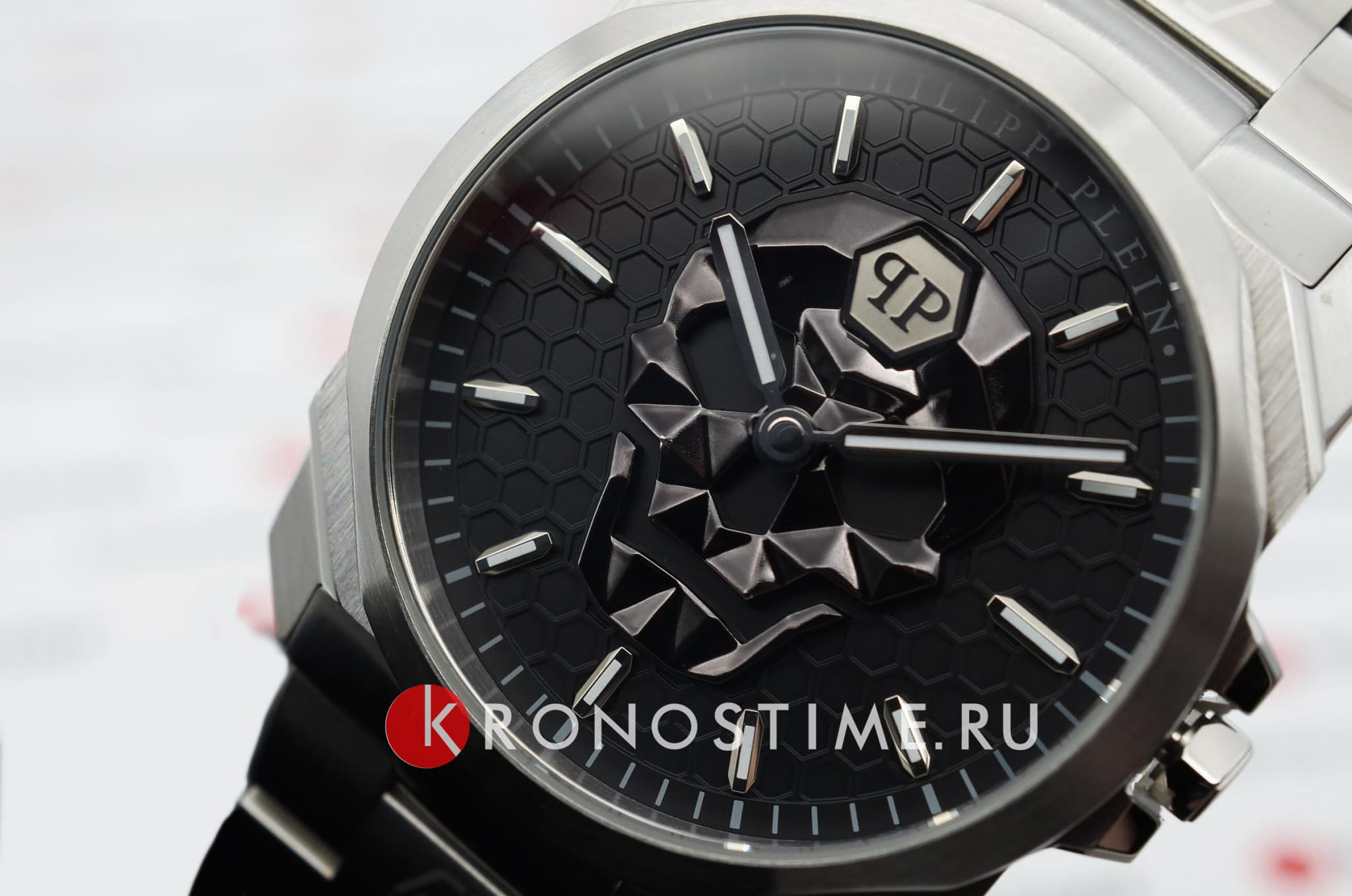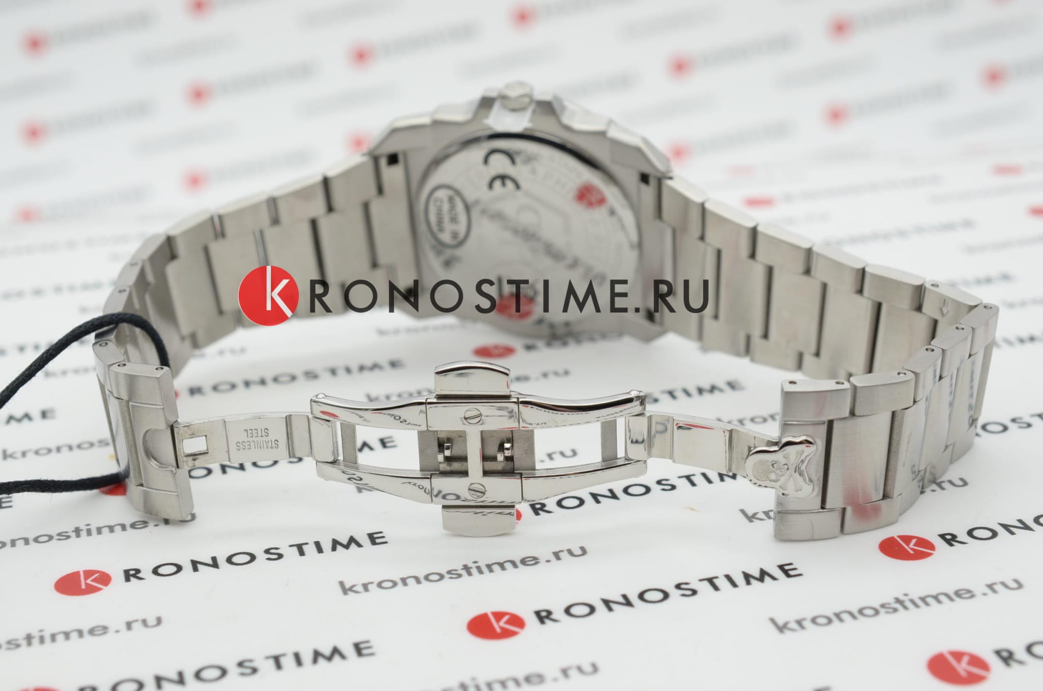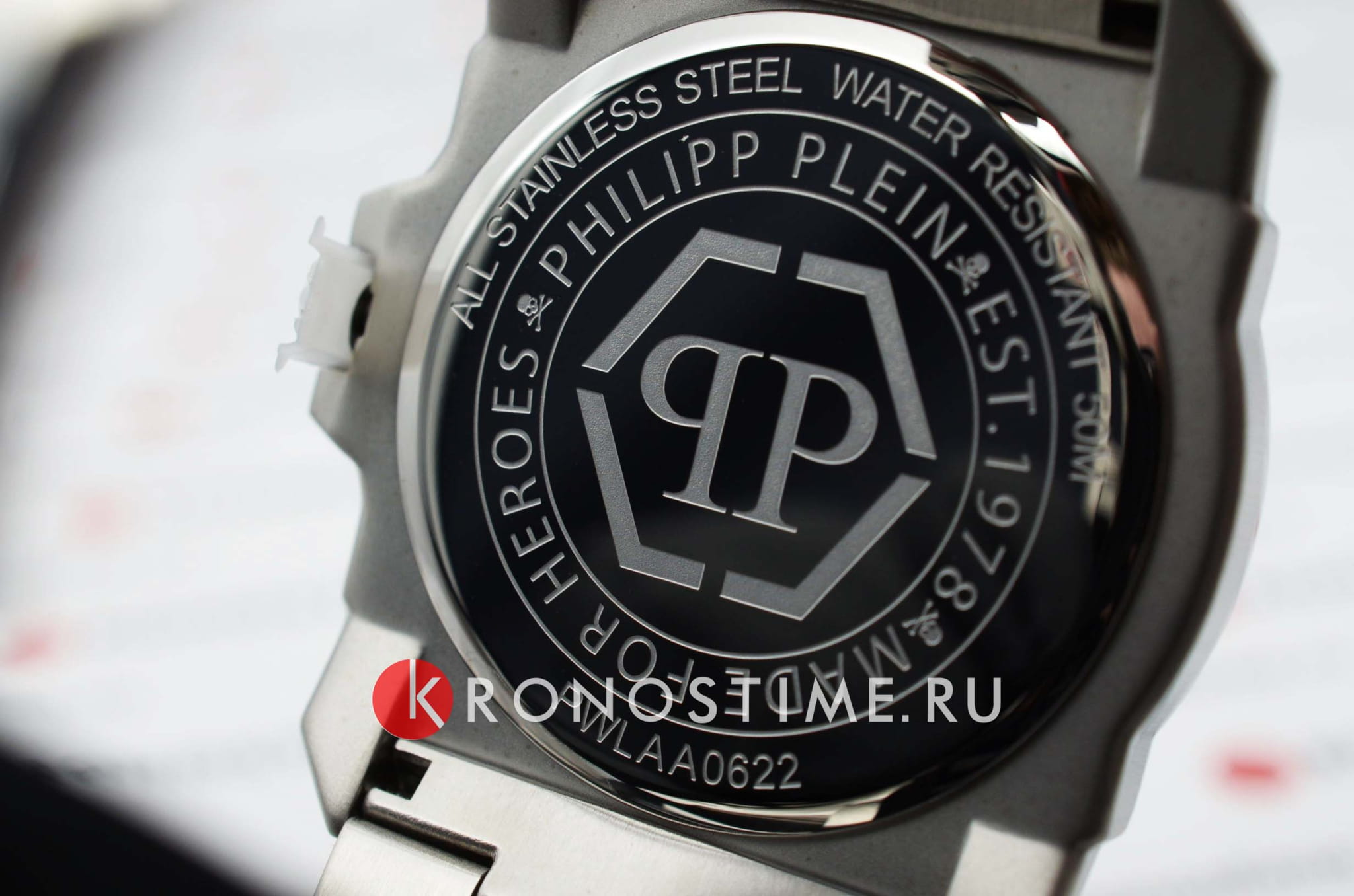 Мужские кварцевые часы с фирменным изображением черепа Philipp Plein The Skull King PWLAA0622, кварцевый механизм с высокой точностью. Класс водозащиты: 50 метров, позволит защитить корпус от случайных брызг или капель дождя. Корпус и браслет часов изготовлены из стали. Прочное минеральное стеклоМинеральное стеклоМинеральное стекло представляет собой искусственно выращенный минерал кварца. Такое стекло отличается особой устойчивостью к повреждениям и царапинам. Уступает по некоторым качествам сапфировому стеклу. устойчивое к мелким механическим повреждениям. Браслет дополняет застёжка-бабочка с кнопкамиЗастёжка "бабочка"Такой вид застёжки дополняется предохранителями, помогающими избежать случайного раскрытия браслета. Обладают изящным исполнением. .