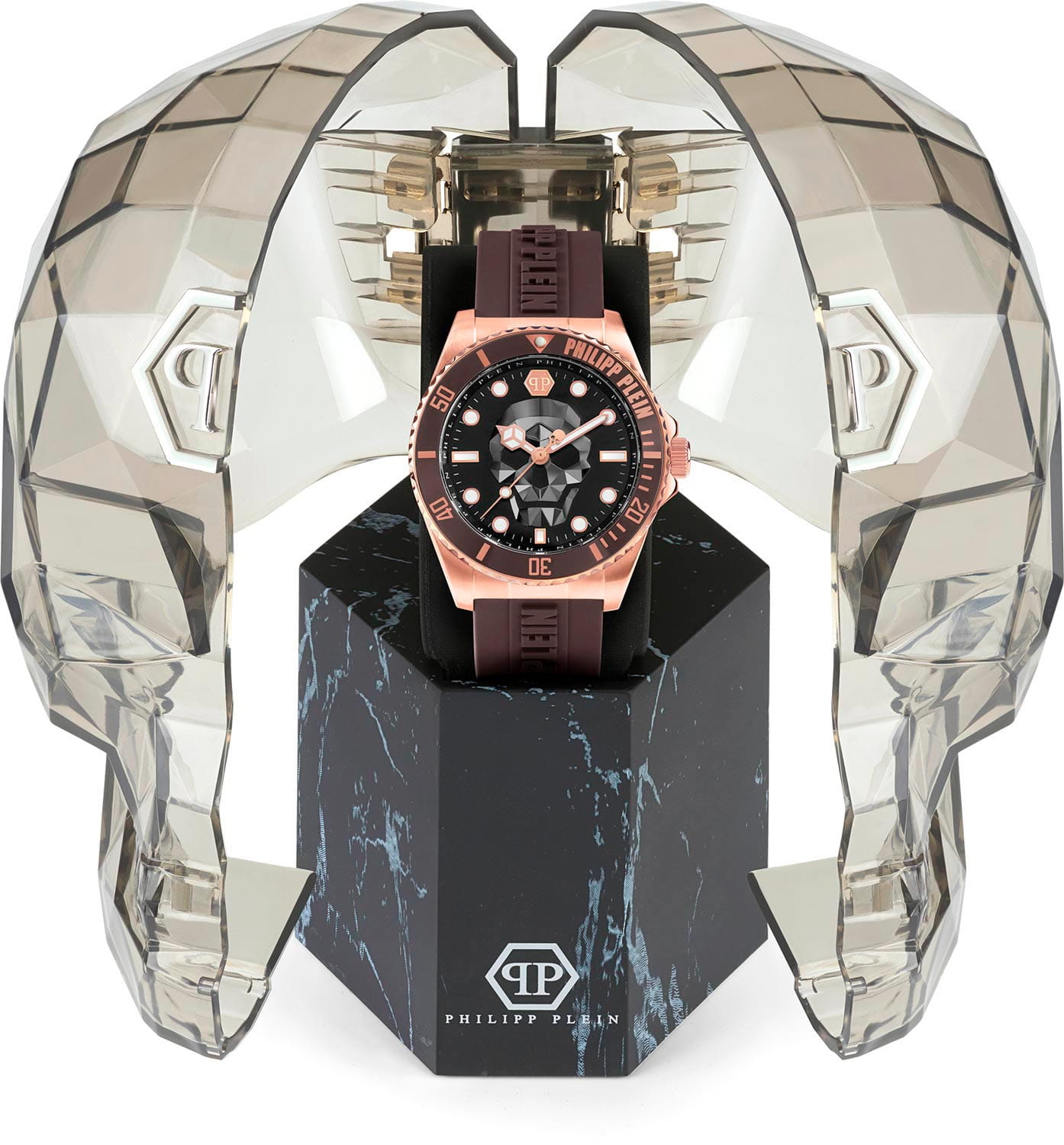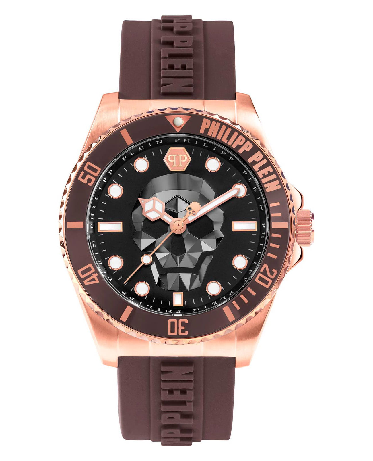 Яркие мужские часы с минеральным стекломМинеральное стеклоМинеральное стекло представляет собой искусственно выращенный минерал кварца. Такое стекло отличается особой устойчивостью к повреждениям и царапинам. Уступает по некоторым качествам сапфировому стеклу. Philipp Plein The Skull PWOAA0322, кварцевый механизм с высокой точностью. Класс водозащиты: 50 метров, позволит защитить корпус от случайных брызг или капель дождя. Корпус часов изготовлен из стали с IP-покрытиемIP-покрытиеМетод ионного напыления. Демонстрирует повышенную устойчивость к истиранию, окислению и химическим веществам. Под воздействием высокого давления и температуры около 1500°C молекулы металла надёжно соединяются с частицами корпуса часов.. Стрелки и метки с люминесцентным покрытиемЛюминесцентное покрытиеПозволяет считывать показания времени в темноте. Производители наносят на стрелки, часовые индексы, безель или поверхность циферблата светонакопительный состав, дающий холодное свечение.. Часы с раскладной застёжкойРаскладная застёжкаТакой тип застёжки используется только на браслетах из металла. Она никогда не раскрывается полностью, происходит разделение на 2 и более частей. Раскладывающая застёжка снизит вероятность потери часов к минимуму.