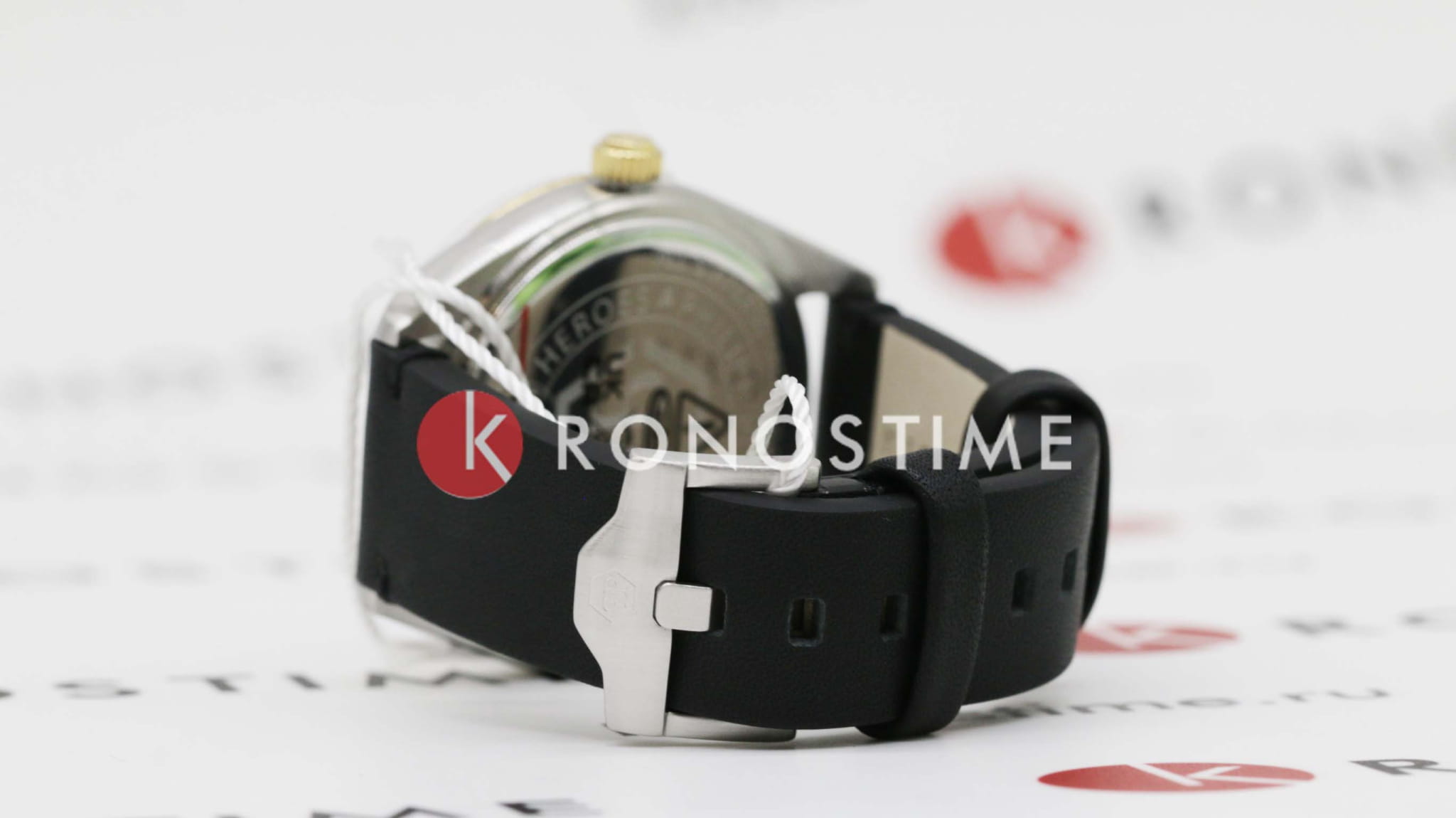 Часы оснащены кварцевым механизмом, обеспечивающим точность хода. Минеральное стеклоМинеральное стеклоМинеральное стекло представляет собой искусственно выращенный минерал кварца. Такое стекло отличается особой устойчивостью к повреждениям и царапинам. Уступает по некоторым качествам сапфировому стеклу. защищает циферблат от повреждений, а люминесцентное покрытиеЛюминесцентное покрытиеПозволяет считывать показания времени в темноте. Производители наносят на стрелки, часовые индексы, безель или поверхность циферблата светонакопительный состав, дающий холодное свечение. на стрелках обеспечивают удобное считывание времени в условиях недостаточной освещённости.