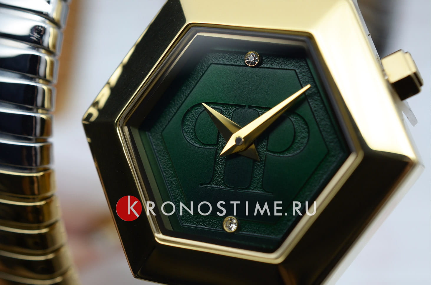 Яркие женские часы  Philipp Plein Snake Hexagon PWZAA0323 с минеральным стекломМинеральное стеклоМинеральное стекло представляет собой искусственно выращенный минерал кварца. Такое стекло отличается особой устойчивостью к повреждениям и царапинам. Уступает по некоторым качествам сапфировому стеклу.. Символ неотразимого гламура и роскоши. Соблазнительное воплощение легендарной утонченности, такой аксессуар - неотразимый символ, который вселяет в женщин уверенность и силу. Авангардная геометрия, чувственные изгибы, изысканная привлекательность и драгоценные мысли - все это сделает вас непревзойденной. Корпус изготовлен из стали с IP-покрытиемIP-покрытиеМетод ионного напыления. Демонстрирует повышенную устойчивость к истиранию, окислению и химическим веществам. Под воздействием высокого давления и температуры около 1500°C молекулы металла надёжно соединяются с частицами корпуса часов..