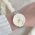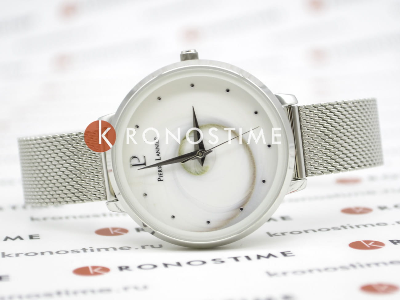 Женские часы Pierre Lannier Ocean 030L698, кварцевый механизм с высокой точностью. Прочное минеральное стеклоМинеральное стеклоМинеральное стекло представляет собой искусственно выращенный минерал кварца. Такое стекло отличается особой устойчивостью к повреждениям и царапинам. Уступает по некоторым качествам сапфировому стеклу., устойчивое к мелким механическим повреждениям. Круглый корпус выполнен из нержавеющей стали. Перламутровый циферблат украшает уникальное изображение глаза Сент-Люсии. Центральные часовая и минутная стрелки. Класс водозащиты: 30 метров, позволит защитить корпус от случайных брызг или капель дождя. Стальной браслет миланского плетения на раскладном замкеРаскладной замокДанный вариант застежки используется только на часах с металлическим браслетом. Отличительная особенность такого крепления в том, что длина браслета становится универсальной и вы можете самостоятельно отрегулировать нужный вам размер – застежка просто двигается по браслету часов..