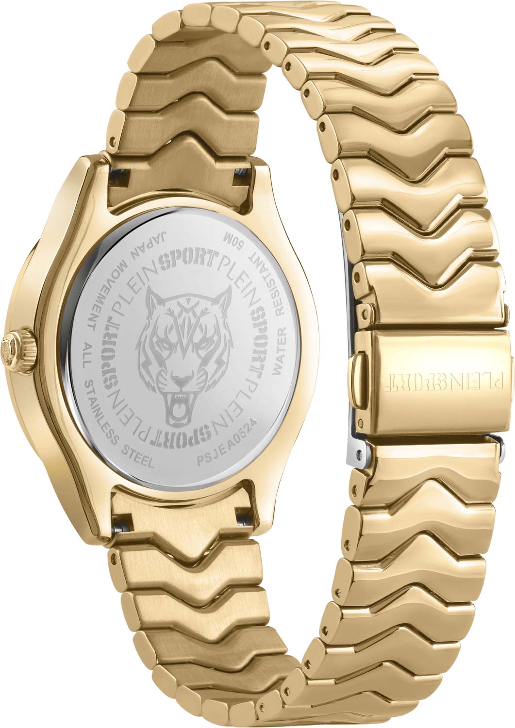 Немецкие кварцевые женские часы Plein Sport Legend PSJEA0524, кварцевый механизм с высокой точностью. Класс водозащиты: 50 метров, позволит защитить корпус от случайных брызг или капель дождя. Корпус и браслет часов изготовлены из стали с IP-покрытиемIP-покрытиеМетод ионного напыления. Демонстрирует повышенную устойчивость к истиранию, окислению и химическим веществам. Под воздействием высокого давления и температуры около 1500°C молекулы металла надёжно соединяются с частицами корпуса часов.. Стрелки и метки с люминесцентным покрытиемЛюминесцентное покрытиеПозволяет считывать показания времени в темноте. Производители наносят на стрелки, часовые индексы, безель или поверхность циферблата светонакопительный состав, дающий холодное свечение..