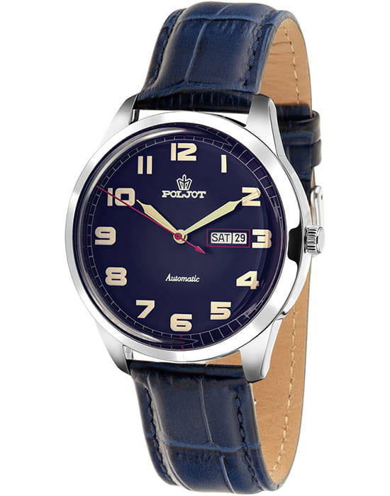 Poljot 8205.581026 — классические механические мужские часы с автоподзаводом, сочетающие традиции отечественного часового производства и лаконичный современный стиль. Корпус из нержавеющей стали подчёркивает надёжность и сдержанную элегантность модели, а глубокий циферблат с минималистичной разметкой, аккуратным окном даты и секундным акцентом придаёт образу динамичность. Механизм с автоподзаводом обеспечивает стабильную работу и плавный ход стрелок, подчёркивая инженерную точность исполнения. Прочное минеральное стеклоМинеральное стеклоМинеральное стекло представляет собой искусственно выращенный минерал кварца. Такое стекло отличается особой устойчивостью к повреждениям и царапинам. Уступает по некоторым качествам сапфировому стеклу. защищает циферблат, а ремешок из натуральной кожи с классической текстурой крокодила обеспечивает комфорт и благородный внешний вид. Poljot — воплощение надёжности, традиций и мужской элегантности, созданное для тех, кто ценит качество и уверенность в каждой детали.