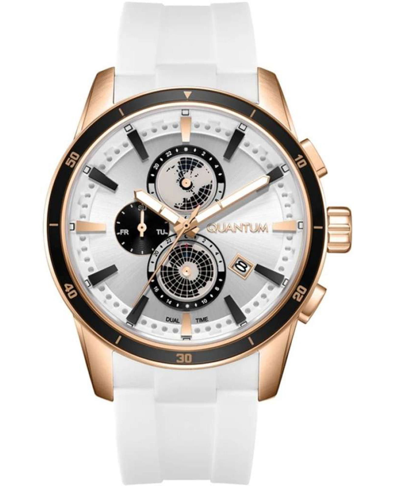 Мужские кварцевые часы Quantum ADG991.433 из коллекции Adrenaline — смелый спортивный акцент с функцией двойного времени. Корпус круглый, из нержавеющей стали с PVD-покрытиемPVDУльтратонкое покрытие наносится в технике вакуумного напыления, сочетает в себе нитрид титана особой прочности со слоем золота или оксида хрома. Несёт в себе декоративную или защитную функцию. цвета розового золота, диаметром 47 мм. Циферблат — бедый с индикацией даты, дня недели и второго часового поясаВторой часовой поясФункция, позволяющая отображать время двух часовых поясов одновременно.. Стекло — минеральноеМинеральное стеклоМинеральное стекло представляет собой искусственно выращенный минерал кварца. Такое стекло отличается особой устойчивостью к повреждениям и царапинам. Уступает по некоторым качествам сапфировому стеклу. с антибликовым покрытием. Водонепроницаемость 100 м. Ремешок — белый силиконовый на стандартной застёжке. Идеальный выбор для тех, кто ценит турецкий дизайн и активный образ жизни.