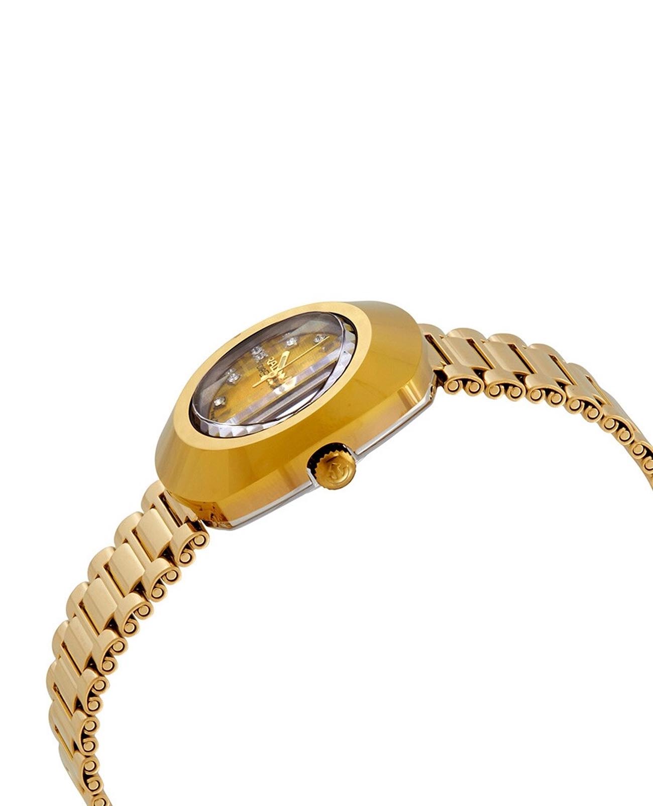 Женские механические швейцарские часы с автоподзаводом Rado The Original R12416503, кварцевый механизм с высокой точностью. Сапфировое стеклоСапфировое стеклоПрочный и надёжный материал из кристалла сапфира синтетического происхождения, характеризующийся особой твёрдостью и устойчивостью к царапинам и повреждениям. устойчивое к появлению царапин, обладающее высокой прозрачностью. Корпус и браслет часов выполнены из нержавеющей стали c PVD-покрытиемPVDУльтратонкое покрытие наносится в технике вакуумного напыления, сочетает в себе нитрид титана особой прочности со слоем золота или оксида хрома. Несёт в себе декоративную или защитную функцию.. Циферблат инкрустирован кристаллами. Класс водозащиты: 30 метров, позволит защитить корпус от случайных брызг или капель дождя. Браслет на раскладной застёжкеРаскладная застёжкаТакой тип застёжки используется только на браслетах из металла. Она никогда не раскрывается полностью, происходит разделение на 2 и более частей. Раскладывающая застёжка снизит вероятность потери часов к минимуму..