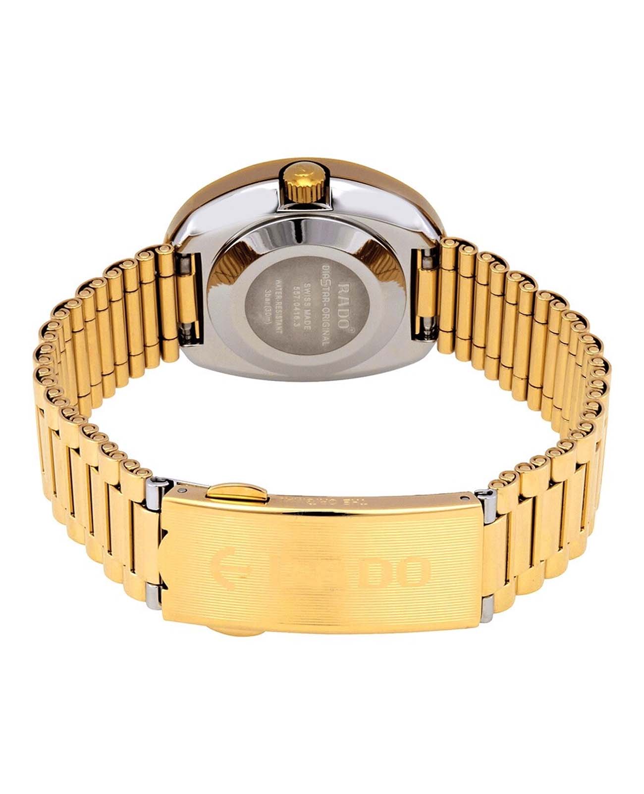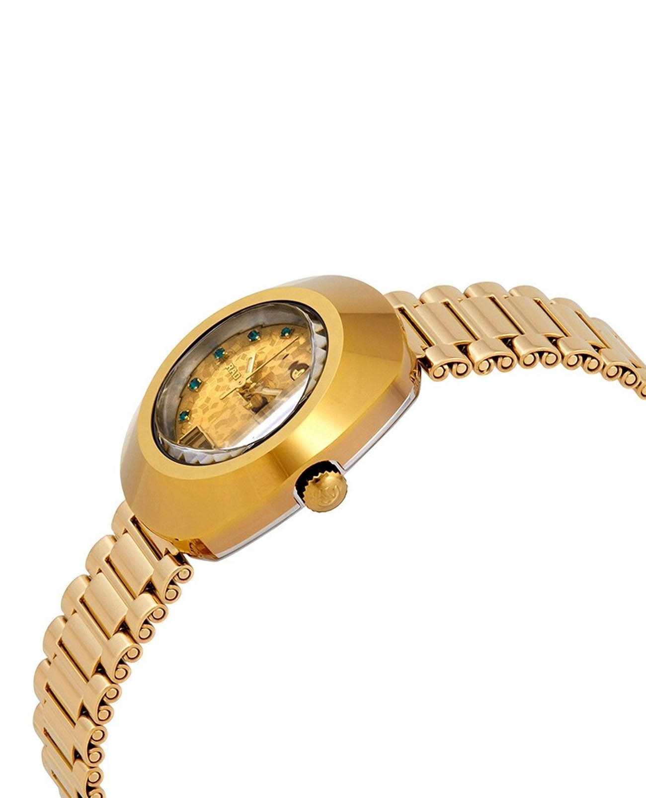 Женские механические швейцарские часы с автоподзаводом Rado The Original R12416663. Сапфировое стеклоСапфировое стеклоПрочный и надёжный материал из кристалла сапфира синтетического происхождения, характеризующийся особой твёрдостью и устойчивостью к царапинам и повреждениям. устойчивое к появлению царапин, обладающее высокой прозрачностью. Корпус и браслет часов выполнены из нержавеющей стали c PVD-покрытиемPVDУльтратонкое покрытие наносится в технике вакуумного напыления, сочетает в себе нитрид титана особой прочности со слоем золота или оксида хрома. Несёт в себе декоративную или защитную функцию.. Циферблат инкрустирован кристаллами. Класс водозащиты: 30 метров, позволит защитить корпус от случайных брызг или капель дождя. Браслет на раскладной застёжкеРаскладная застёжкаТакой тип застёжки используется только на браслетах из металла. Она никогда не раскрывается полностью, происходит разделение на 2 и более частей. Раскладывающая застёжка снизит вероятность потери часов к минимуму..