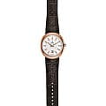 Мужские механические швейцарские часы Rado D-Star R15516105. Сапфировое стеклоСапфировое стеклоПрочный и надёжный материал из кристалла сапфира синтетического происхождения, характеризующийся особой твёрдостью и устойчивостью к царапинам и повреждениям. устойчивое к мелким механическим повреждениям. Корпус часов изготовлен из нержавеющей стали с PVD-покрытиемPVDУльтратонкое покрытие наносится в технике вакуумного напыления, сочетает в себе нитрид титана особой прочности со слоем золота или оксида хрома. Несёт в себе декоративную или защитную функцию.. Стрелки с люминесцентным покрытиемЛюминесцентное покрытиеПозволяет считывать показания времени в темноте. Производители наносят на стрелки, часовые индексы, безель или поверхность циферблата светонакопительный состав, дающий холодное свечение.. Окошко даты находится в положении 6 часов.  Класс водозащиты: 100 метров, позволит плавать, нырять и заниматься другими водными видами спорта. Кожаный ремешок на раскладной застёжкеРаскладная застёжкаТакой тип застёжки используется только на браслетах из металла. Она никогда не раскрывается полностью, происходит разделение на 2 и более частей. Раскладывающая застёжка снизит вероятность потери часов к минимуму..