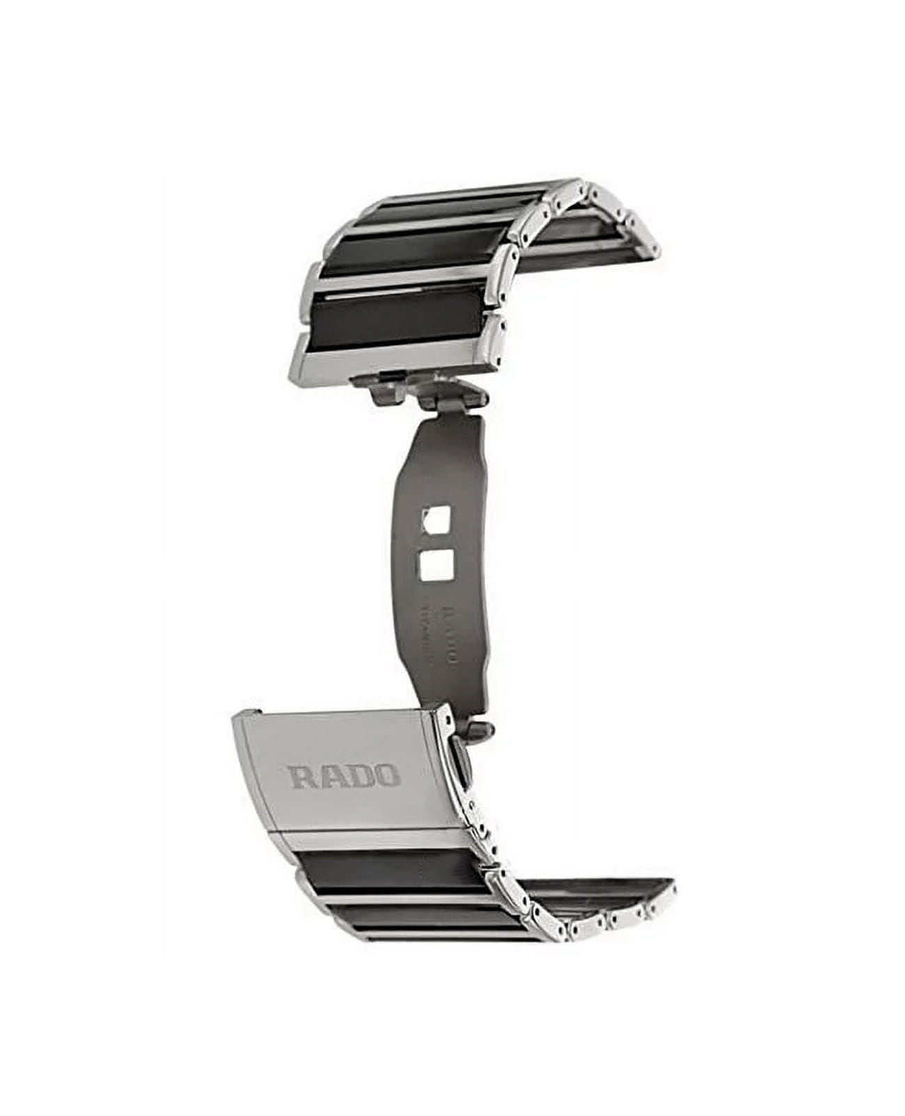Швейцарские мужские механические швейцарские часы с автоподзаводом Rado Integral R20853152. Сапфировое стеклоСапфировое стеклоПрочный и надёжный материал из кристалла сапфира синтетического происхождения, характеризующийся особой твёрдостью и устойчивостью к царапинам и повреждениям. устойчивое к появлению царапин, обладающее высокой прозрачностью. Корпус часов изготовлен из нержавеющей стали и керамики. Окошко даты находится в положении 6 часов. Стрелки с люминесцентным покрытиемЛюминесцентное покрытиеПозволяет считывать показания времени в темноте. Производители наносят на стрелки, часовые индексы, безель или поверхность циферблата светонакопительный состав, дающий холодное свечение.. Класс водозащиты: 30 метров, позволит защитить корпус от случайных брызг или капель дождя. Браслет из нержавеющей стали и керамики на раскладной застёжкеРаскладная застёжкаТакой тип застёжки используется только на браслетах из металла. Она никогда не раскрывается полностью, происходит разделение на 2 и более частей. Раскладывающая застёжка снизит вероятность потери часов к минимуму..