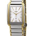 Часы оснащены точным кварцевым механизмом, гарантирующим стабильную работу. Браслет из нержавеющей стали с золотистыми вставками дополнен застёжкой 'бабочка'Застёжка "бабочка"Такой вид застёжки дополняется предохранителями, помогающими избежать случайного раскрытия браслета. Обладают изящным исполнением. , обеспечивающей удобство и надёжную фиксацию.