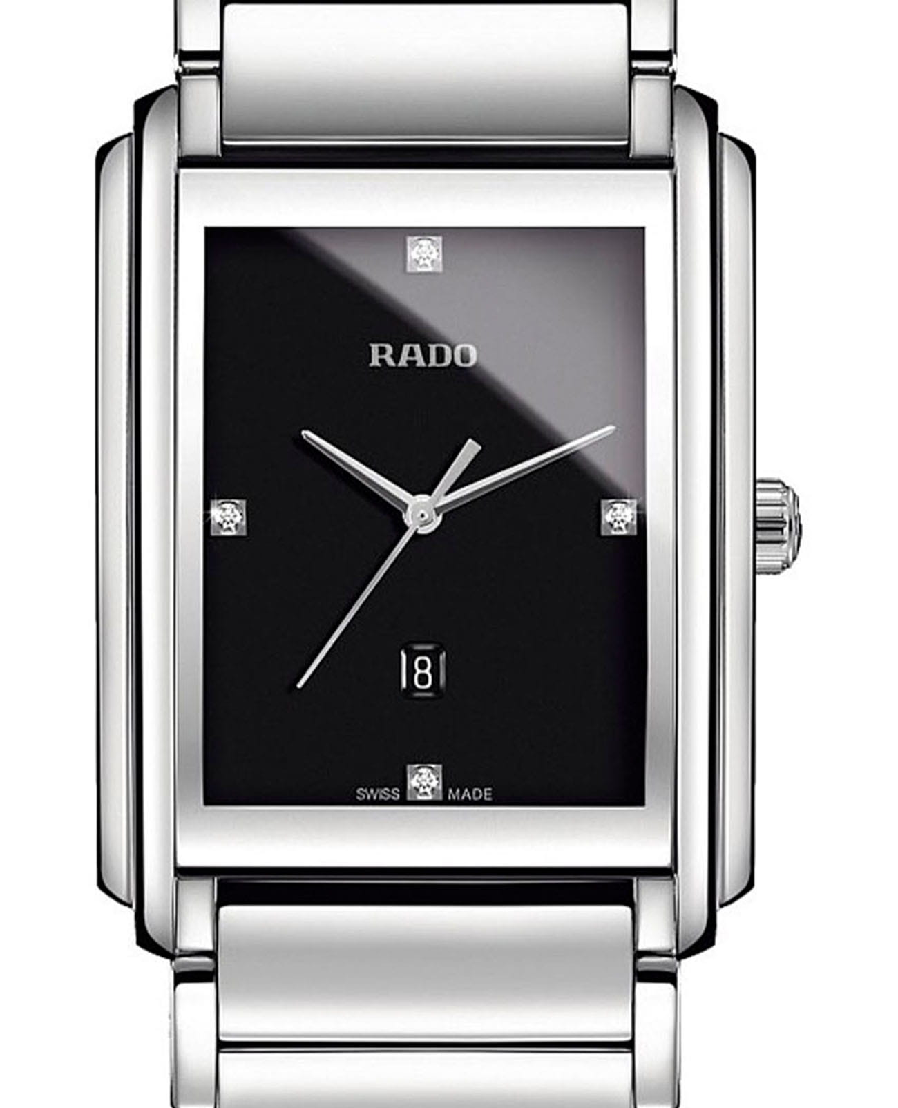 Женские часы Rado Integral Diamonds R20997713 с надёжным кварцевым механизмом. Сапфировое стеклоСапфировое стеклоПрочный и надёжный материал из кристалла сапфира синтетического происхождения, характеризующийся особой твёрдостью и устойчивостью к царапинам и повреждениям. устойчивое к мелким механическим повреждениям. Корпус выполнен из нержавеющей стали. Циферблат инкрустирован бриллиантами. Окошко даты находится в положении 6 часов. Класс водозащиты: 50 метров, позволит защитить корпус от случайных брызг или капель дождя. Стальной браслет на раскладной застёжкеРаскладная застёжкаТакой тип застёжки используется только на браслетах из металла. Она никогда не раскрывается полностью, происходит разделение на 2 и более частей. Раскладывающая застёжка снизит вероятность потери часов к минимуму.. Бриллианты отмечают позиции 3, 6, 9 и 12 часов.