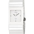 Швейцарские часы Rado Ceramica R21711702, кварцевый механизм с высокой точностью. Сапфировое стеклоСапфировое стеклоПрочный и надёжный материал из кристалла сапфира синтетического происхождения, характеризующийся особой твёрдостью и устойчивостью к царапинам и повреждениям. устойчивое к появлению царапин, обладающее высокой прозрачностью. Корпус часов изготовлен из нержавеющей стали и керамики. Класс водозащиты: 30 метров, позволит защитить корпус от случайных брызг или капель дождя. Керамический браслет на раскладной застёжкойРаскладная застёжкаТакой тип застёжки используется только на браслетах из металла. Она никогда не раскрывается полностью, происходит разделение на 2 и более частей. Раскладывающая застёжка снизит вероятность потери часов к минимуму... Циферблат украшен 4 бриллиантами.