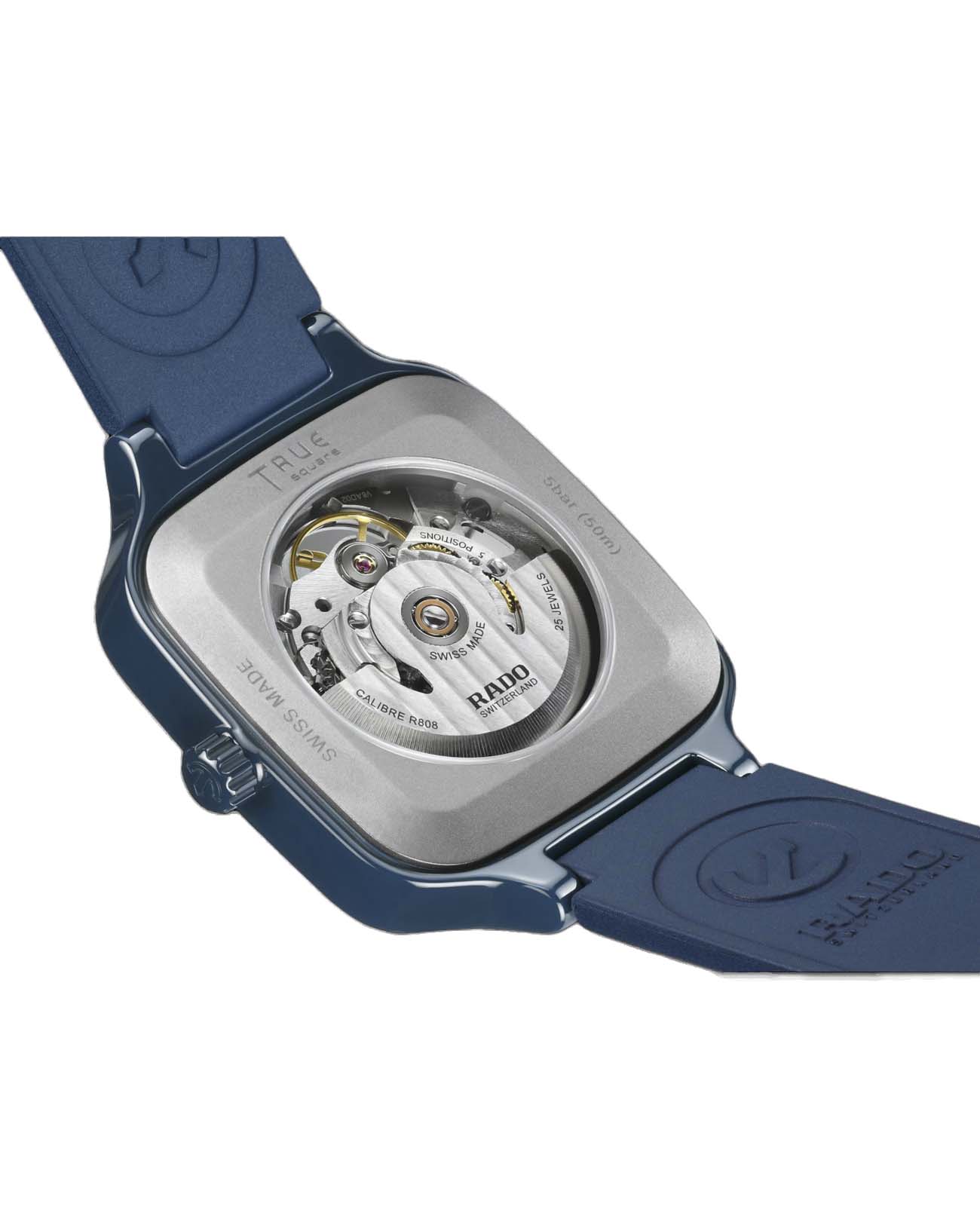 Швейцарские механические часы с автоподзаводом Rado True Square Automatic Skeleton R27178205 . True Square - это новый взгляд на культовую форму Rado. Первые часы True Square, изготовленные с использованием моноблочного высокотехнологичного керамическогоВысокотехнологичная керамикаИнновационный запатентованный Rado материал с гладкой или матовой поверхностью. Керамика за счёт кристаллической структуры обладает повышенной устойчивостью от возникновения царапин. Материал способен принимать температуру тела человека, обеспечивая невероятный комфорт при ношении. корпуса квадратной формы, легкие, устойчивые к царапинам и удобные в носке. Швейцарский автоматический механизм отличается резервом хода на 80 часов. Стрелки и метки дополнены ярким люминесцентным покрытиемЛюминесцентное покрытиеПозволяет считывать показания времени в темноте. Производители наносят на стрелки, часовые индексы, безель или поверхность циферблата светонакопительный состав, дающий холодное свечение.. Сапфировое стеклоСапфировое стеклоПрочный и надёжный материал из кристалла сапфира синтетического происхождения, характеризующийся особой твёрдостью и устойчивостью к царапинам и повреждениям. на 100% устойчиво к царапинам. Скелетонизированный циферблат. Класс водозащиты: 50 метров, позволит защитить корпус от случайных брызг или капель дождя. Ремешок с надежной застёжкой бабочка с кнопкамиЗастёжка "бабочка"Такой вид застёжки дополняется предохранителями, помогающими избежать случайного раскрытия браслета. Обладают изящным исполнением. .
