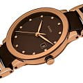 Женские швейцарские механические часы из коллекции Centrix являют собой современный элемент роскошного стиля. Аксессуар в коричневом цвете станет достойным дополнением к образу. Это стильная деталь современного имиджа, особый шик ей придают 12 бриллиантов цвета Top Wesselton в 0,025 карат. Наручные часы с автоподзаводом работают за счёт калибра ETA C07.611, который отличается увеличенным запасом хода до 80 часов. Надёжный корпус из хирургической стали 316L. Браслет имеет вставки из высокотехнологичной керамикиВысокотехнологичная керамикаИнновационный запатентованный Rado материал с гладкой или матовой поверхностью. Керамика за счёт кристаллической структуры обладает повышенной устойчивостью от возникновения царапин. Материал способен принимать температуру тела человека, обеспечивая невероятный комфорт при ношении.. Износоустойчивое PVD-покрытиеPVDУльтратонкое покрытие наносится в технике вакуумного напыления, сочетает в себе нитрид титана особой прочности со слоем золота или оксида хрома. Несёт в себе декоративную или защитную функцию.. Стекло из сапфира. Апертура даты. Диаметр корпуса: 28 мм. Производство и сборка: Швейцария.