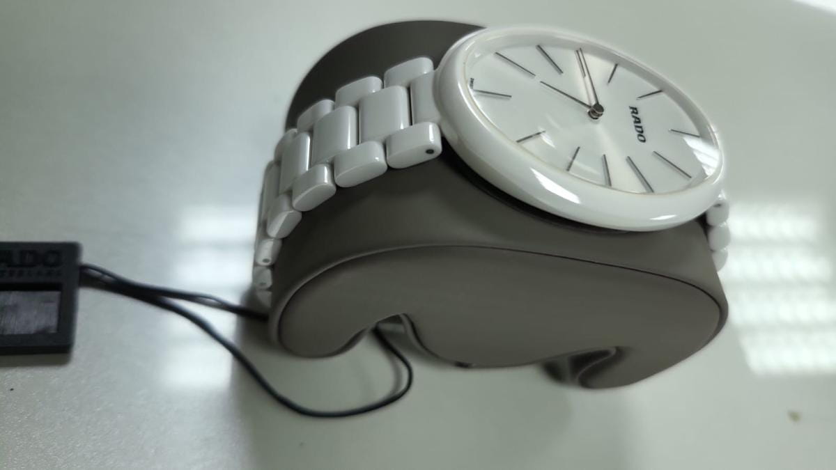 Это сенсорные часы, оснащенные двумя чипами. Время можно переустанавливать всего лишь одним касанием. Модель отлично сидит на руке. Корпус выполнен из керамики устойчивой к царапинам. Сапфировое стекло с антибликовым покрытием. Гарантия 2 года.