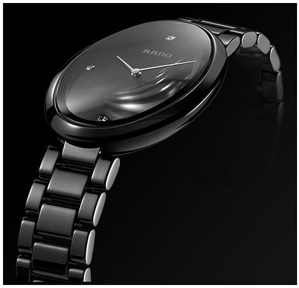 Женские керамические швейцарские часы с бриллиантами Rado Esenza Ceramic Touch R53093712, кварцевый механизм с высокой точностью. Сапфировое стекло устойчивое к появлению царапин, обладающее высокой прозрачностью. Класс водозащиты: 30 метров, позволит защитить корпус от случайных брызг или капель дождя. Корпус часов изготовлен из керамики, цвета.