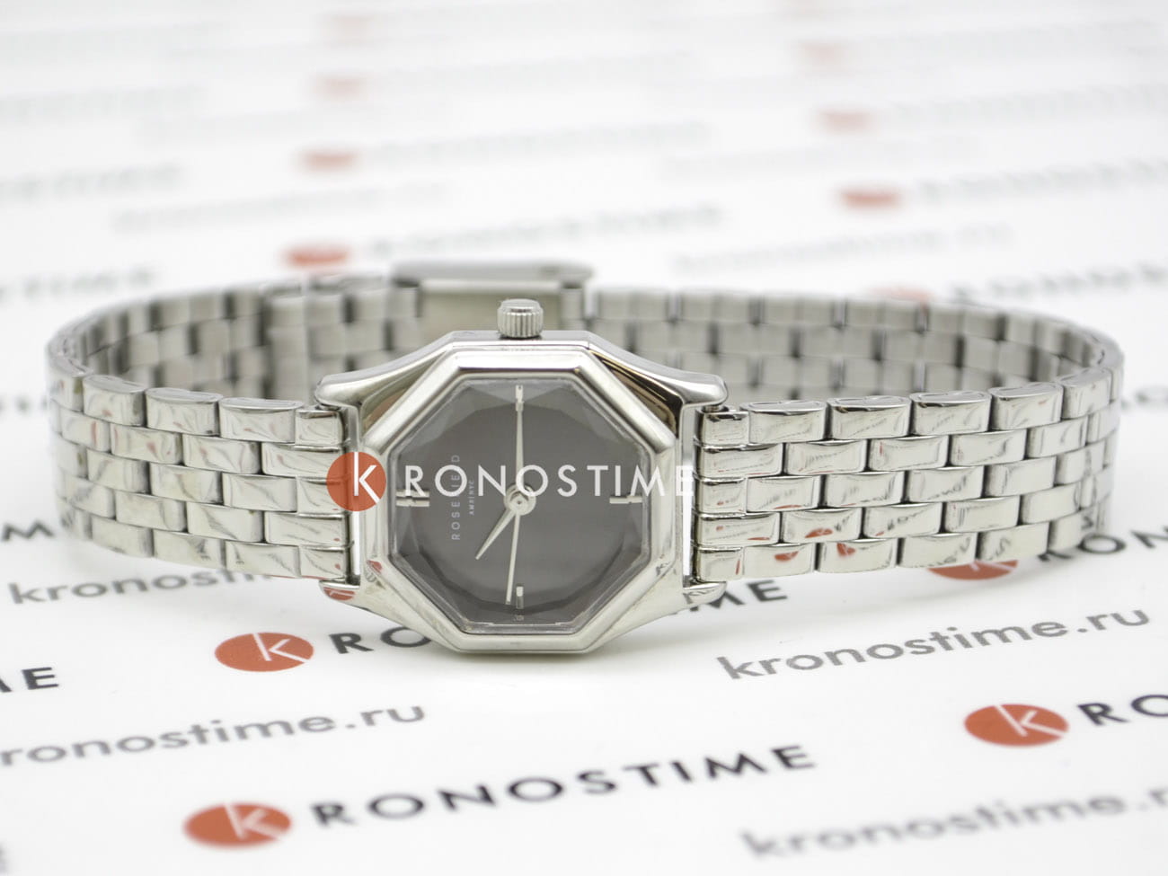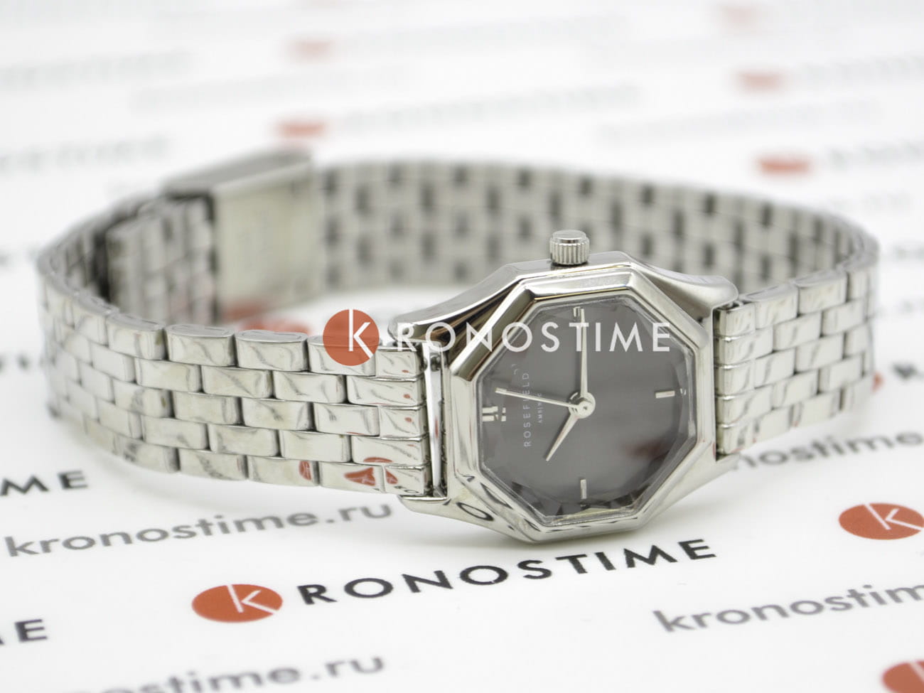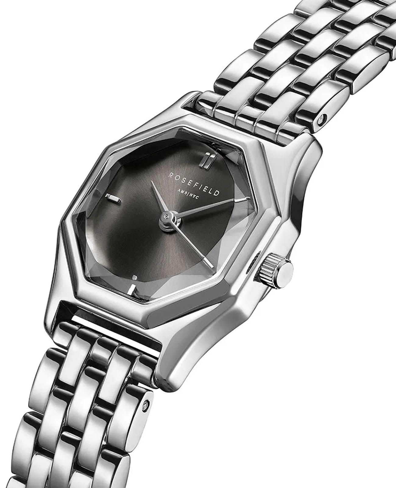 Женские кварцевые часы Rosefield The Gemme GGSSS-G05. Центральные часовая, минутная и секундная стрелки. Восьмиугольный корпус выполнен из полированной нержавеющей стали. Размер корпуса составляет 21,5 х 27,5 мм. Стальной браслет c ювелирной застежкой. Прочное минеральное стеклоМинеральное стеклоМинеральное стекло представляет собой искусственно выращенный минерал кварца. Такое стекло отличается особой устойчивостью к повреждениям и царапинам. Уступает по некоторым качествам сапфировому стеклу. устойчивое к мелким механическим повреждениям. Класс водозащиты: 30 метров, позволит защитить корпус от случайных брызг или капель дождя.