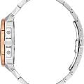 Мужские механические часы с автоподзаводом Santa Barbara Polo & Racquet Club — это сочетание практичности и сдержанного стиля. Корпус диаметром 40,5 мм выполнен из нержавеющей стали 316L. БезельБезельВнешний ободок, закрепляющий стекло. В спортивных часах так называется поворотное кольцо с делениями на циферблате, выполняет роль таймера – замеряет отрезки времени на шкале. Неподвижный безель – элемент декора. Однонаправленно вращающийся безель на дайверских часах позволяет фиксировать моменты погружения и выныривания на поверхность. с IP-покрытиемIP-покрытиеМетод ионного напыления. Демонстрирует повышенную устойчивость к истиранию, окислению и химическим веществам. Под воздействием высокого давления и температуры около 1500°C молекулы металла надёжно соединяются с частицами корпуса часов. розового золота, с матовой и полированной отделкой. Циферблат белого цвета фактурный, украшен фирменным логотипом и накладными метками в виде штрихов. Через прозрачное окошко на циферблате можно наблюдать за работой механизма. Стрелки прямоугольные, заострённые, в стиле Baton, с люминесцентным покрытиемЛюминесцентное покрытиеПозволяет считывать показания времени в темноте. Производители наносят на стрелки, часовые индексы, безель или поверхность циферблата светонакопительный состав, дающий холодное свечение., обеспечивающим хорошую читаемость в темноте. Циферблат защищён минеральным стеклом. Часы оснащены браслетом из стали с IP-покрытиемIP-покрытиеМетод ионного напыления. Демонстрирует повышенную устойчивость к истиранию, окислению и химическим веществам. Под воздействием высокого давления и температуры около 1500°C молекулы металла надёжно соединяются с частицами корпуса часов. на застёжке «бабочка» с кнопкамиЗастёжка "бабочка"Такой вид застёжки дополняется предохранителями, помогающими избежать случайного раскрытия браслета. Обладают изящным исполнением. . Водонепроницаемость 50 м позволяет использовать часы в повседневных условиях. Идеальный выбор для тех, кто ценит качество, надёжность и утончённый дизайн.