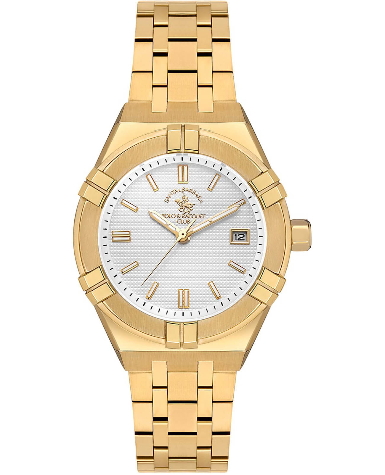 Женские кварцевые Santa Barbara Polo & Racquet Club Luxury SB.1.10559-2 — воплощение элегантности и технического совершенства. Изысканный корпус из стали 316L с IP-покрытиемIP-покрытиеМетод ионного напыления. Демонстрирует повышенную устойчивость к истиранию, окислению и химическим веществам. Под воздействием высокого давления и температуры около 1500°C молекулы металла надёжно соединяются с частицами корпуса часов., диаметром 35 мм, что делает их устойчивыми к внешним воздействиям и придает благородный вид. Стрелки и метки с люминесцентным покрытиемЛюминесцентное покрытиеПозволяет считывать показания времени в темноте. Производители наносят на стрелки, часовые индексы, безель или поверхность циферблата светонакопительный состав, дающий холодное свечение., обеспечивающим хорошую читаемость в темноте. Изящный циферблат защищён минеральным стекломМинеральное стеклоМинеральное стекло представляет собой искусственно выращенный минерал кварца. Такое стекло отличается особой устойчивостью к повреждениям и царапинам. Уступает по некоторым качествам сапфировому стеклу., устойчивое к царапинам и механическим повреждениям. Окошко даты находится в положении 3 часа. Браслет из стали с IP-покрытиемIP-покрытиеМетод ионного напыления. Демонстрирует повышенную устойчивость к истиранию, окислению и химическим веществам. Под воздействием высокого давления и температуры около 1500°C молекулы металла надёжно соединяются с частицами корпуса часов. c застёжкой «бабочка»Застёжка "бабочка"Такой вид застёжки дополняется предохранителями, помогающими избежать случайного раскрытия браслета. Обладают изящным исполнением. , обеспечивающим комфортное и безопасное ношение. Водонепроницаемость 50 метров позволит защитить корпус от случайных брызг или капель дождя. Идеальный выбор для тех, кто ценит элегантный дизайн и качество.