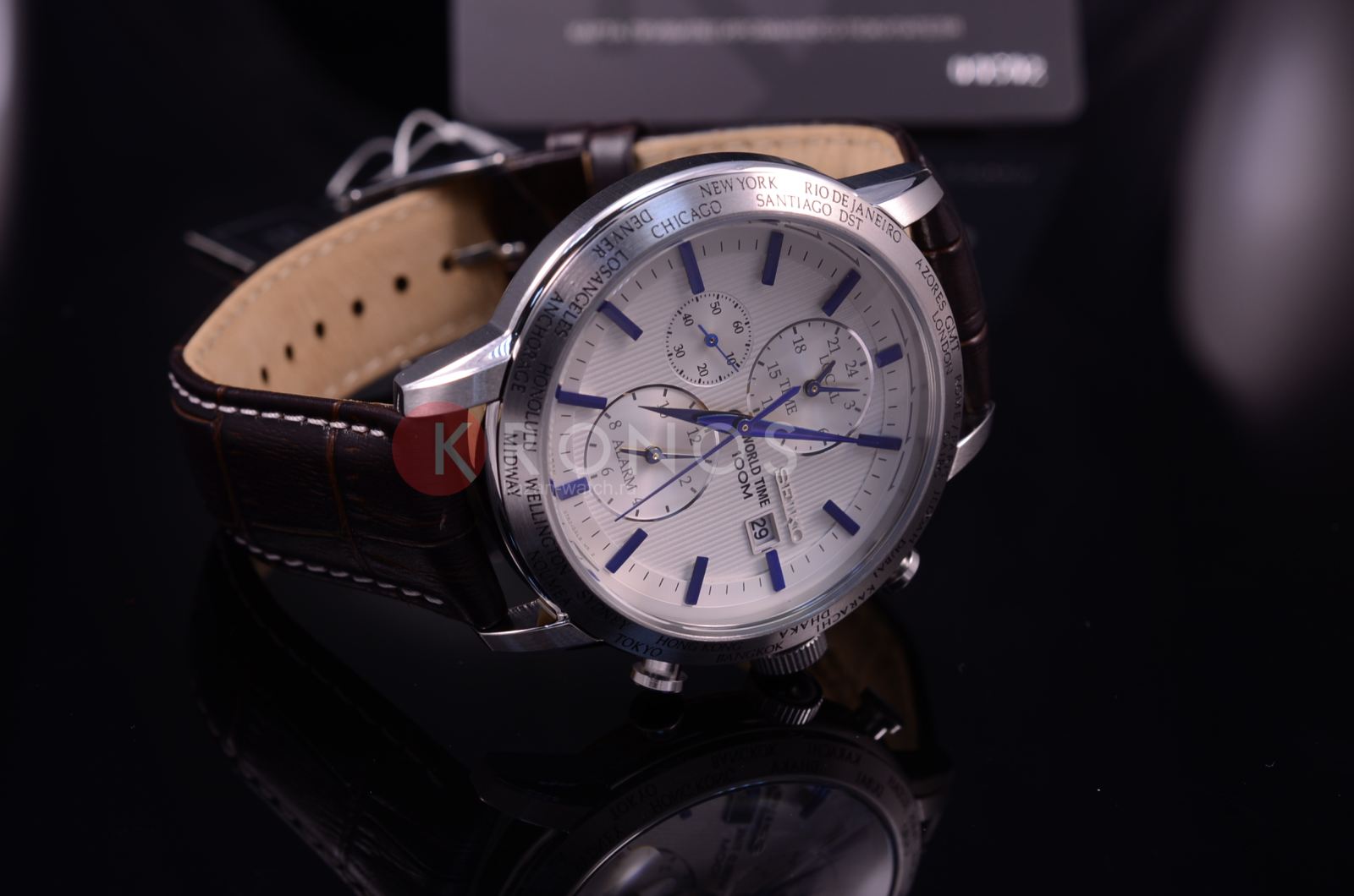 Кварцевые часы. Калибр 5Т82. 12/24 часовой формат времени. Второй часовой пояс. Индикатор числа. Будильник. Корпус из нержавеющей стали. Минеральное стекло. Кожаный ремень. Диаметр 42 мм.
