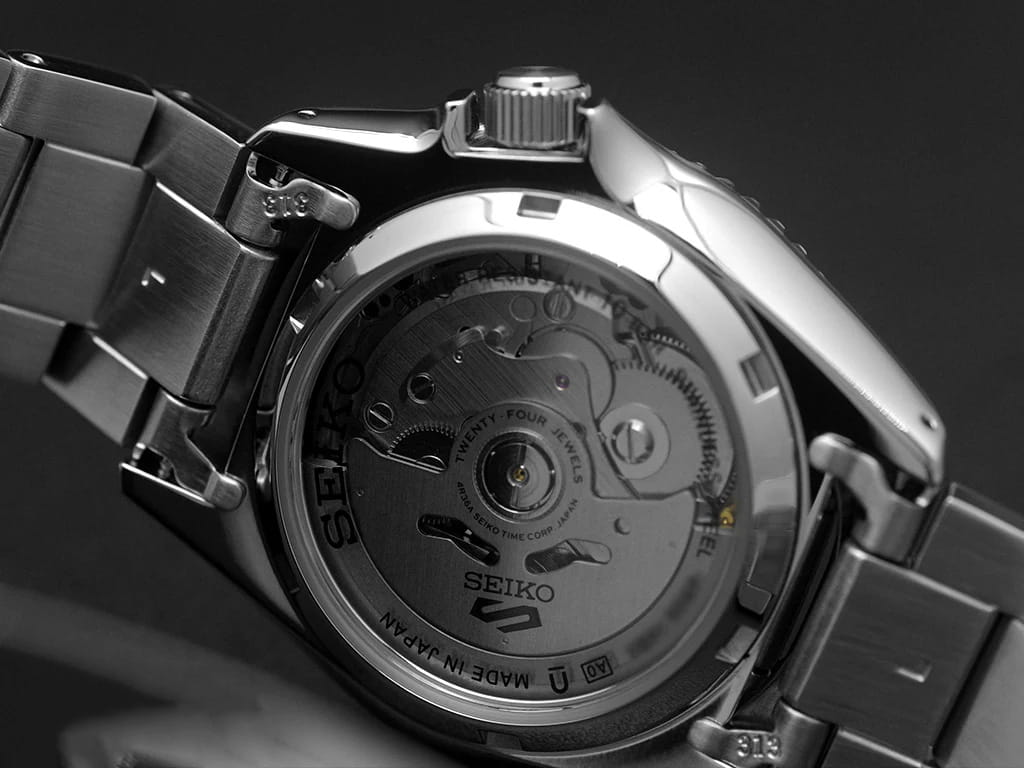 Мужские механические часы с автоподзаводом Seiko — это надёжный и функциональный аксессуар. Корпус размером 38 мм и толщиной 12 мм выполнен из нержавеющей стали. БезельБезельВнешний ободок, закрепляющий стекло. В спортивных часах так называется поворотное кольцо с делениями на циферблате, выполняет роль таймера – замеряет отрезки времени на шкале. Неподвижный безель – элемент декора. Однонаправленно вращающийся безель на дайверских часах позволяет фиксировать моменты погружения и выныривания на поверхность. с PVD-покрытиемPVDУльтратонкое покрытие наносится в технике вакуумного напыления, сочетает в себе нитрид титана особой прочности со слоем золота или оксида хрома. Несёт в себе декоративную или защитную функцию. однонаправленно вращающийся. Циферблат чёрного цвета оформлен индексами и стрелками. Окошки даты и дня недели расположены в положении 3 часов. Стрелки и метки с люминесцентным покрытиемЛюминесцентное покрытиеПозволяет считывать показания времени в темноте. Производители наносят на стрелки, часовые индексы, безель или поверхность циферблата светонакопительный состав, дающий холодное свечение. LumiBrite, обеспечивающим хорошую читаемость в темноте. Циферблат защищён прочным закалённым минеральным стеклом Hardlex. Механизм — автоматический калибр 4R36 (24 камня, частота 21 600 полуколебаний в час) с функцией остановки секундной стрелки и запасом хода до 41 часа. Заводная головка с защитой смещена в положение 4 часов. Прозрачная задняя крышка позволяет наблюдать за работой механизма. Часы оснащены стальным браслетом на тройной раскладной застёжкеРаскладная застёжкаТакой тип застёжки используется только на браслетах из металла. Она никогда не раскрывается полностью, происходит разделение на 2 и более частей. Раскладывающая застёжка снизит вероятность потери часов к минимуму. с фиксатором. Водонепроницаемость 100 м позволяет использовать часы для плавания и повседневного ношения. Идеальный выбор для тех, кто ценит японское качество и точность.