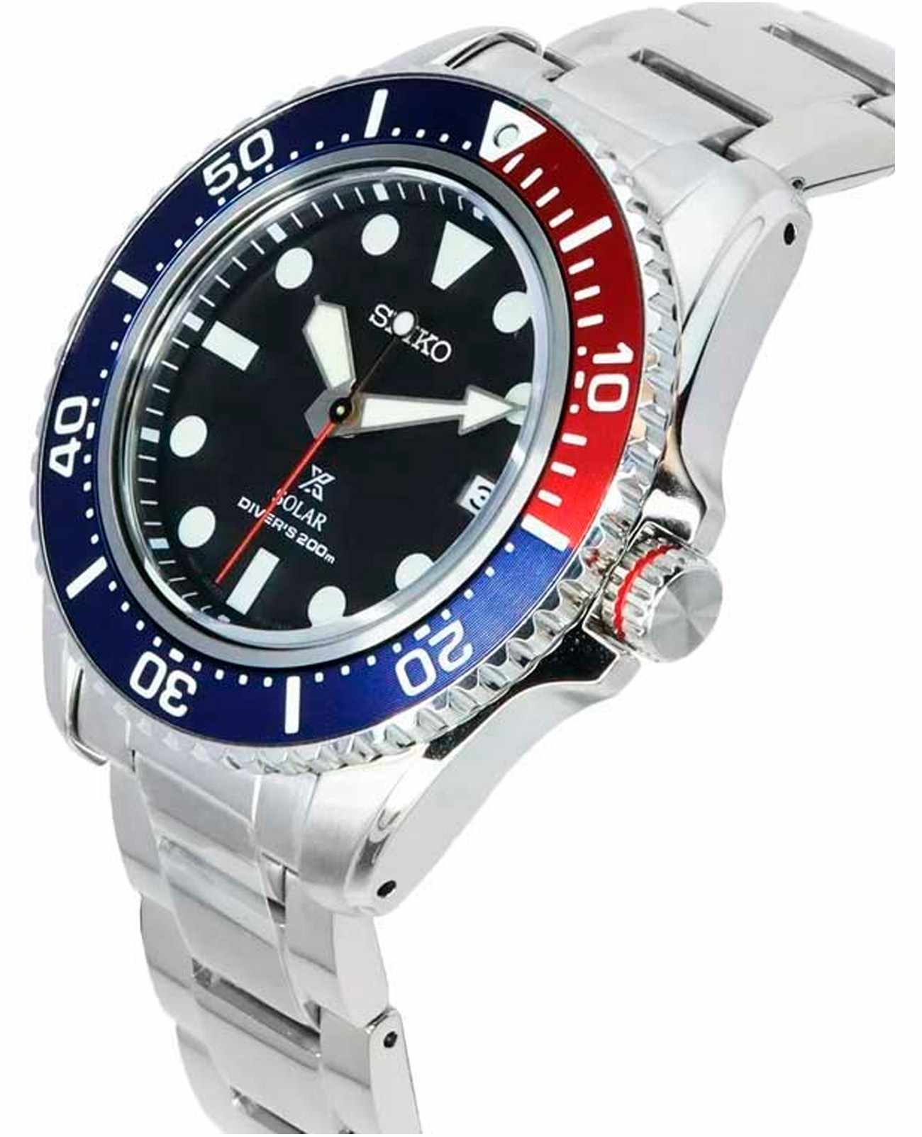 Мужские наручные часы Seiko Prospex SNE591P1 из коллекции Prospex сочетают в себе спортивный дизайн и надежность современных технологий. Модель обладает круглым корпусом диаметром 42,8 мм, изготовленным из нержавеющей стали, что обеспечивает высокую устойчивость к внешним воздействиям . Защита циферблата выполнена с использованием сапфирового стеклаСапфировое стеклоПрочный и надёжный материал из кристалла сапфира синтетического происхождения, характеризующийся особой твёрдостью и устойчивостью к царапинам и повреждениям., устойчивого к появлению царапин и обладающего высокой прозрачностью . БезельБезельВнешний ободок, закрепляющий стекло. В спортивных часах так называется поворотное кольцо с делениями на циферблате, выполняет роль таймера – замеряет отрезки времени на шкале. Неподвижный безель – элемент декора. Однонаправленно вращающийся безель на дайверских часах позволяет фиксировать моменты погружения и выныривания на поверхность. с PVD-покрытиемPVDУльтратонкое покрытие наносится в технике вакуумного напыления, сочетает в себе нитрид титана особой прочности со слоем золота или оксида хрома. Несёт в себе декоративную или защитную функцию.. Часы оснащены системой Solar, которая не требует замены батарейки и обеспечивает запас хода до 10 месяцев при полной зарядке аккумулятора . Кварцевый механизм с калибром V157 гарантирует высокую точность работы, а функция EOLEOLПредставляет собой систему, уведомляющую владельца часов о необходимости замены элемента питания. За 2 недели до полного разряда батарейки секундная стрелка перестаёт ходить чётко и начинает перепрыгивать на 3-4 деления. позволяет контролировать уровень заряда аккумулятора . Циферблат дополнен люминесцентным покрытиемЛюминесцентное покрытиеПозволяет считывать показания времени в темноте. Производители наносят на стрелки, часовые индексы, безель или поверхность циферблата светонакопительный состав, дающий холодное свечение., обеспечивающим видимость в темное время суток. Водонепроницаемость модели достигает 200 метров (WR200), что делает ее подходящей для плавания, ныряния и других водных видов спорта, включая погружение с аквалангом. Браслет выполнен из нержавеющей стали на раскладной застёжкеРаскладная застёжкаТакой тип застёжки используется только на браслетах из металла. Она никогда не раскрывается полностью, происходит разделение на 2 и более частей. Раскладывающая застёжка снизит вероятность потери часов к минимуму., что обеспечивает комфортное ношение и долговечность.