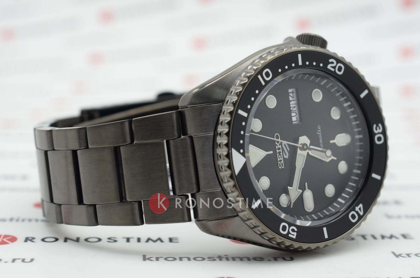Водозащита 100 метров (10 бар) позволяет использовать часы для плавания и других водных видов спорта. Стальной браслет с чёрным PVD-покрытиемPVDУльтратонкое покрытие наносится в технике вакуумного напыления, сочетает в себе нитрид титана особой прочности со слоем золота или оксида хрома. Несёт в себе декоративную или защитную функцию. и раскладной застёжкойРаскладная застёжкаТакой тип застёжки используется только на браслетах из металла. Она никогда не раскрывается полностью, происходит разделение на 2 и более частей. Раскладывающая застёжка снизит вероятность потери часов к минимуму. обеспечивает комфортное ношение и надёжную фиксацию на запястье.