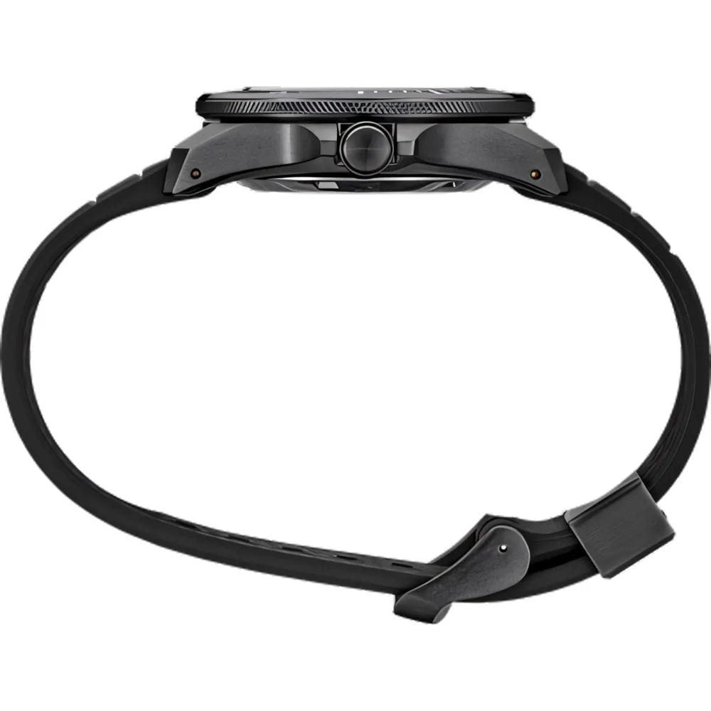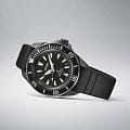 Односторонний вращающийся безельБезельВнешний ободок, закрепляющий стекло. В спортивных часах так называется поворотное кольцо с делениями на циферблате, выполняет роль таймера – замеряет отрезки времени на шкале. Неподвижный безель – элемент декора. Однонаправленно вращающийся безель на дайверских часах позволяет фиксировать моменты погружения и выныривания на поверхность. с минутной шкалой позволяет точно контролировать время погружения. Чёрный матовый циферблат дополнен крупными стрелками и метками с люминесцентным покрытиемЛюминесцентное покрытиеПозволяет считывать показания времени в темноте. Производители наносят на стрелки, часовые индексы, безель или поверхность циферблата светонакопительный состав, дающий холодное свечение. LumiBrite, включая точку на безеле, обеспечивая превосходную читаемость в темноте. Циферблат защищён прочным стеклом Hardlex с увеличительным окном над датой. Внутри установлен автоматический калибр Seiko 4R35 с возможностью ручного подзавода, остановкой секундной стрелки и запасом хода около 41 часа. Модель комплектуется чёрным силиконовым ремешком на стандартной застежке, что делает часы удобными при использовании с гидрокостюмом.
