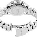 Модель Seiko SSC935P1 из коллекции Prospex Speedtimer — это спортивный солнечный хронограф с выразительным дизайном и высокой функциональностью. Корпус диаметром 41,4 мм выполнен из нержавеющей стали и оснащён завинчивающейся задней крышкой и заводной головкой, обеспечивая водозащиту до 100 метров. Фиксированный алюминиевый тахиметрический безельТахиметрРазмеченная шкала, располагается на ободке или безеле часов. Тахиметр позволяет рассчитать скорость на определённом участке пути, расстояние измеряется в километрах или милях. позволяет производить измерения скорости. Циферблат насыщенного голубого оттенка с солнечным финишем дополнен тремя чёрными счётчиками: 24-часовым, малой секундной стрелкой и хронографом на 60 минут. Стрелки и индексы покрыты люминесцентным покрытиемЛюминесцентное покрытиеПозволяет считывать показания времени в темноте. Производители наносят на стрелки, часовые индексы, безель или поверхность циферблата светонакопительный состав, дающий холодное свечение. LumiBrite для превосходной видимости в тёмное время суток. Защиту циферблата обеспечивает выпуклое сапфировое стеклоСапфировое стеклоПрочный и надёжный материал из кристалла сапфира синтетического происхождения, характеризующийся особой твёрдостью и устойчивостью к царапинам и повреждениям. с внутренним антибликовым покрытиемАнтибликовое покрытиеСлой оксида металла в 0,13-0,3 микрон, благодаря которому стекло часов не бликует и не отражает свет. Антибликовое покрытие уменьшает отражение света в 10 раз, обеспечивая отличную читаемость показателей циферблата., устойчивое к царапинам и бликам. Внутри установлен солнечный кварцевый калибр V192 с функциями хронографаХронографФункция позволяет измерять отрезки времени с особой точностью: часы, минуты, секунды. Верным признаком хронографа является наличие на циферблате 3 дополнительных окошек-счётчиков., индикацией 24 часов, даты и запаса хода. Полного заряда хватает до 6 месяцев автономной работы. Браслет из нержавеющей стали надёжно фиксируется при помощи раскладной застёжкиРаскладная застёжкаТакой тип застёжки используется только на браслетах из металла. Она никогда не раскрывается полностью, происходит разделение на 2 и более частей. Раскладывающая застёжка снизит вероятность потери часов к минимуму. с кнопками.