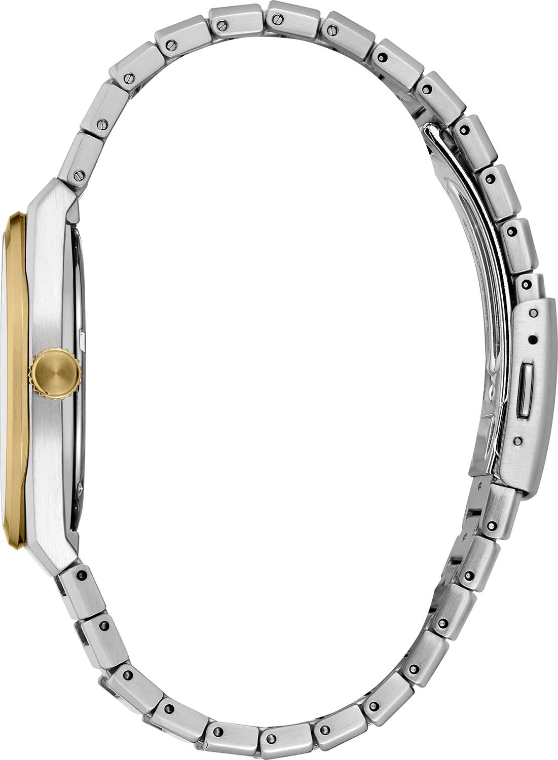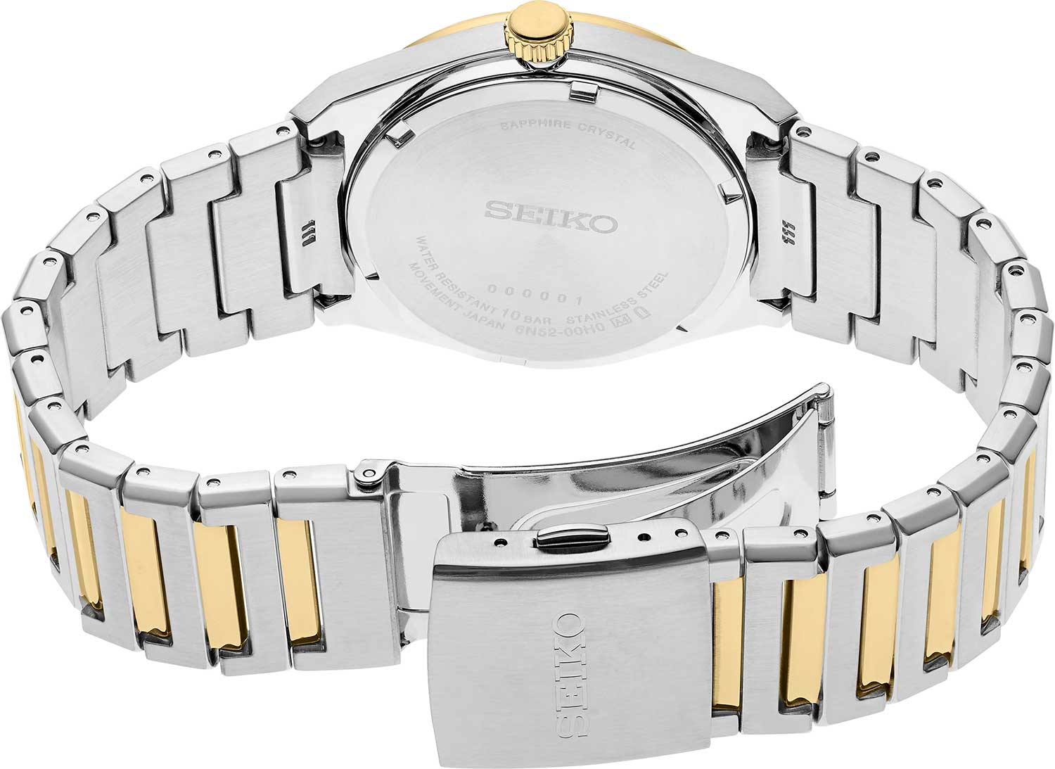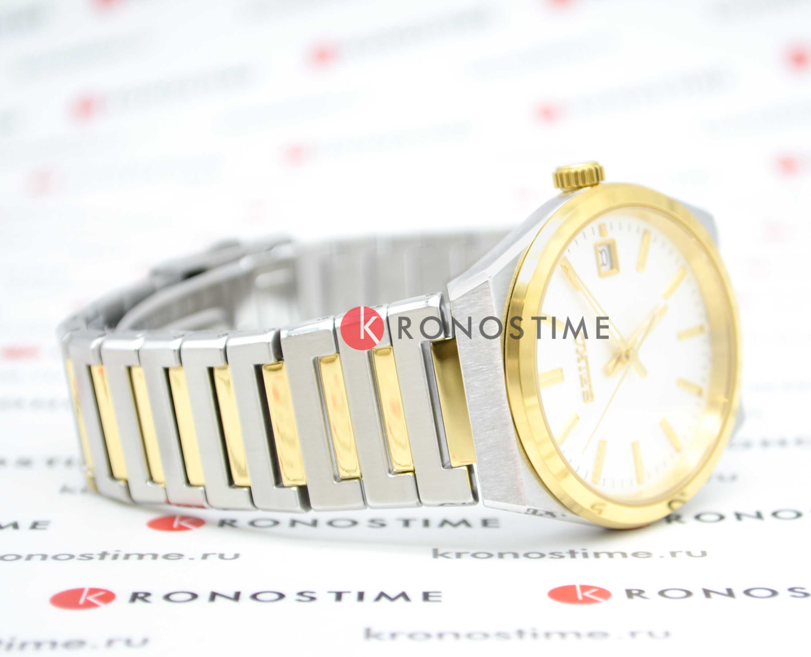 Мужские японские часы Seiko Conceptual Series Dress SUR558P1 с сапфировым стекломСапфировое стеклоПрочный и надёжный материал из кристалла сапфира синтетического происхождения, характеризующийся особой твёрдостью и устойчивостью к царапинам и повреждениям., кварцевый механизм с высокой точностью. Класс водозащиты: 100 метров, позволит плавать, нырять и заниматься другими водными видами спорта. Корпус часов изготовлен из стали. Стальной браслет с частичным PVD-покрытиемPVDУльтратонкое покрытие наносится в технике вакуумного напыления, сочетает в себе нитрид титана особой прочности со слоем золота или оксида хрома. Несёт в себе декоративную или защитную функцию. на раскладной застёжкеРаскладная застёжкаТакой тип застёжки используется только на браслетах из металла. Она никогда не раскрывается полностью, происходит разделение на 2 и более частей. Раскладывающая застёжка снизит вероятность потери часов к минимуму.. Стрелки и метки с люминесцентным покрытиемЛюминесцентное покрытиеПозволяет считывать показания времени в темноте. Производители наносят на стрелки, часовые индексы, безель или поверхность циферблата светонакопительный состав, дающий холодное свечение. LumiBrite. Окошко даты находится в положении 3 часа. Неподвижный безельБезельВнешний ободок, закрепляющий стекло. В спортивных часах так называется поворотное кольцо с делениями на циферблате, выполняет роль таймера – замеряет отрезки времени на шкале. Неподвижный безель – элемент декора. Однонаправленно вращающийся безель на дайверских часах позволяет фиксировать моменты погружения и выныривания на поверхность. с PVD-покрытиемPVDУльтратонкое покрытие наносится в технике вакуумного напыления, сочетает в себе нитрид титана особой прочности со слоем золота или оксида хрома. Несёт в себе декоративную или защитную функцию..
