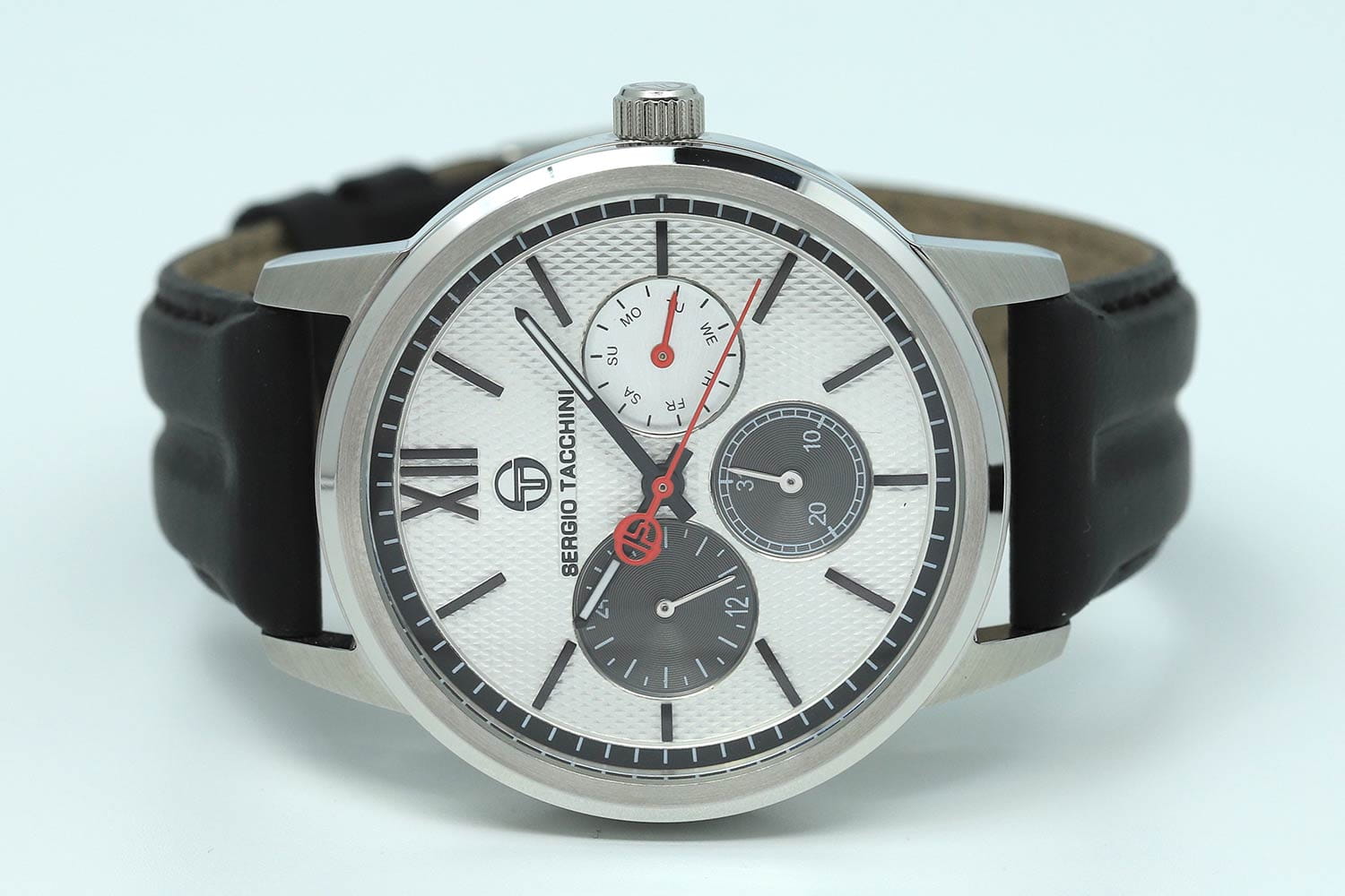 Мужские кварцевые часы Sergio Tacchini из коллекции Archivio — это сочетание классического стиля и надёжной техники. Корпус диаметром 45 мм выполнен из нержавеющей стали 316L. Циферблат белого цвета оформлен декоративным узором, индексами и стрелками. Указатели дня недели и даты вынесены на отдельные субциферблаты, также присутствует индикация 24-часового формата времени. Циферблат защищён минеральным стекломМинеральное стеклоМинеральное стекло представляет собой искусственно выращенный минерал кварца. Такое стекло отличается особой устойчивостью к повреждениям и царапинам. Уступает по некоторым качествам сапфировому стеклу.. Часы оснащены кожаным ремешком чёрного цвета с стандартной застёжкой. Водонепроницаемость 50 м позволяет использовать часы в повседневных условиях. Идеальный выбор для тех, кто ценит лаконичный дизайн и качество.