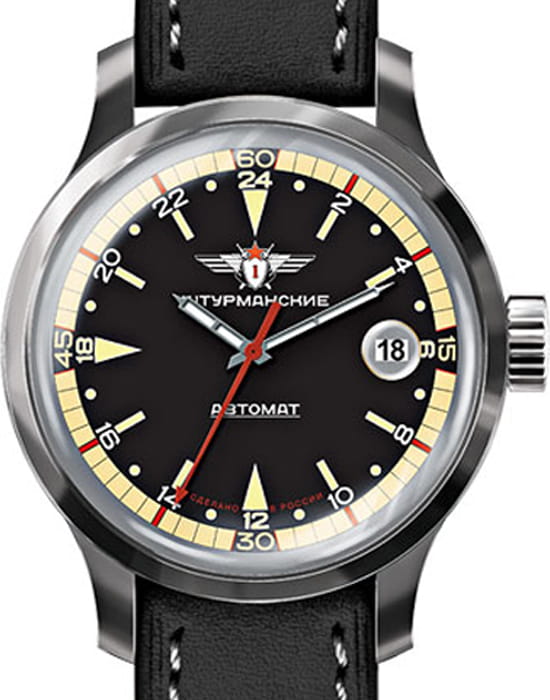 Мужские российские механические часы Штурманские 2431/1767935, механический механизм (автоматический калибр) с высокой точностью. Минеральное стеклоМинеральное стеклоМинеральное стекло представляет собой искусственно выращенный минерал кварца. Такое стекло отличается особой устойчивостью к повреждениям и царапинам. Уступает по некоторым качествам сапфировому стеклу. устойчивое к мелким механическим повреждениям. Класс водозащиты: 30 метров, позволит защитить корпус от случайных брызг или капель дождя. Корпус часов изготовлен из стали. Кожаный ремешок на стандартной застёжке. Чёткая, читаемая минутная шкала уходит за приделы видимой области циферблата, подчёркивая изящность ободка корпуса. Стрелки и метки с люминесцентным покрытиемЛюминесцентное покрытиеПозволяет считывать показания времени в темноте. Производители наносят на стрелки, часовые индексы, безель или поверхность циферблата светонакопительный состав, дающий холодное свечение.. Окошко даты находится в положении 3 часов.
