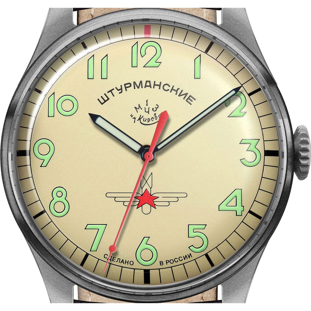 Штурманские мужские российские механические часы 2609-3745128 с механизмом высокой точности. Класс водозащиты: 30 метров, позволит защитить корпус от случайных брызг или капель дождя. Корпус часов изготовлен из стали. Минеральное стеклоМинеральное стеклоМинеральное стекло представляет собой искусственно выращенный минерал кварца. Такое стекло отличается особой устойчивостью к повреждениям и царапинам. Уступает по некоторым качествам сапфировому стеклу. устойчивое к мелким механическим повреждениям.Кожаный ремешок на стандартной застёжке. Стрелки и метки с люминесцентным покрытиемЛюминесцентное покрытиеПозволяет считывать показания времени в темноте. Производители наносят на стрелки, часовые индексы, безель или поверхность циферблата светонакопительный состав, дающий холодное свечение.. Задняя крышка украшена портретом Юрия Гагарина и крепится на 4-х винтах.